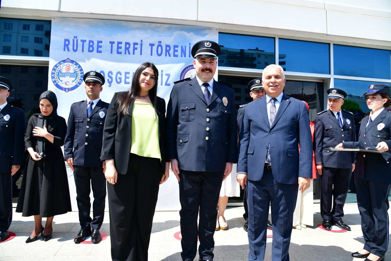 İl Emniyet Müdürlüğünde düzenlenen törene; Vali Aziz Yıldırım, İl Emniyet Müdürü Murat Esertürk, İl Jandarma Komutanı Tuğgeneral B. Murat Yakın, Sahil Güvenlik Doğu Karadeniz Grup Komutanı Binbaşı Aytaç Bayırlı, emniyet mensupları, davetliler ve aileler katıldı.