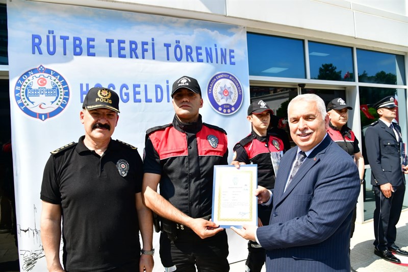 Törende konuşan Vali Yıldırım, emniyet teşkilatının toplumun huzur ve güvenliğinin teminatı olduğunu vurgulayarak, görevini başarıyla sürdüren ve terfiye layık görülen personelin Trabzon’a ve ülkemize önemli katkılar sunduğunu ifade etti.