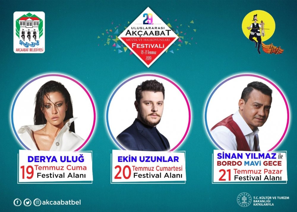 Festival kutlamaları kapsamında; 19 Temmuz Cuma akşamı Coşkun İşçi, Yahya Altun ile Derya Uluğ konserleri, 20 Temmuz Cumartesi akşamı Serdar Bıyıklı, Pelin Karaağaçlı ile Ekin Uzunlar konseri ve 21 Temmuz Pazar son akşam ise Akçaabatlı sanatçılar grubu ve Sinan Yılmaz ile birlikte Bordo Mavi gece gerçekleştirilecektir.