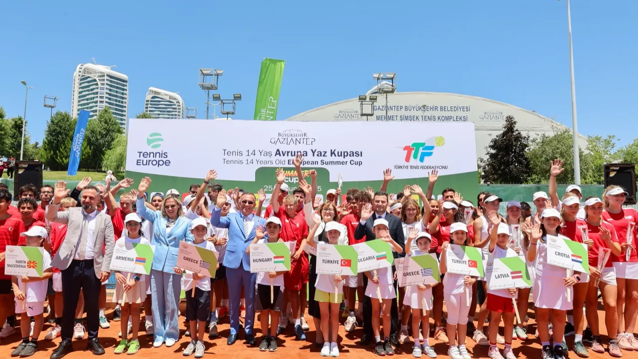 Gaziantep Büyükşehir Belediyesi ve Türkiye Tenis Federasyonu iş birliğinde, Tennis Europe çatısı altında düzenlenen Uluslararası Tenis 14 Yaş Avrupa Yaz Kupası Elemeleri başladı. GAZİANTEP (İGFA) - Bulgaristan, Yunanistan, Macaristan, Kuzey Makedonya, Ermenistan, Hırvatistan, Letonya ve Türkiye olmak üzere 8 farklı ülkenin milli sporcularının da yer aldığı, Avrupa’nın en saygın spor organizasyonlarından biri olan Yaz Kupası açılış töreni, Gaziantep Büyükşehir Belediyesi Mehmet Şimşek Tenis Kompleksi'nde yapıldı.