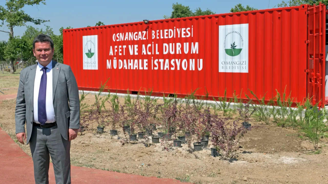 Bursa Osmangazi Belediyesi, Soğanlı Mahallesi’ne içinde olası bir afette hayat kurtaracak araç gereçlerin bulunduğu Afet ve Acil Durum Müdahale İstasyonu kurdu.BURSA (İGFA) - Bursa Osmangazi Belediye Başkanı Erkan Aydın, nüfus yoğunluğuna göre ilçedeki tüm mahallelere 30 ile 15 metrekare genişliğe sahip olan Afet ve Acil Durum Müdahale İstasyonu’ndan bir tanesini koyacaklarını söyledi.