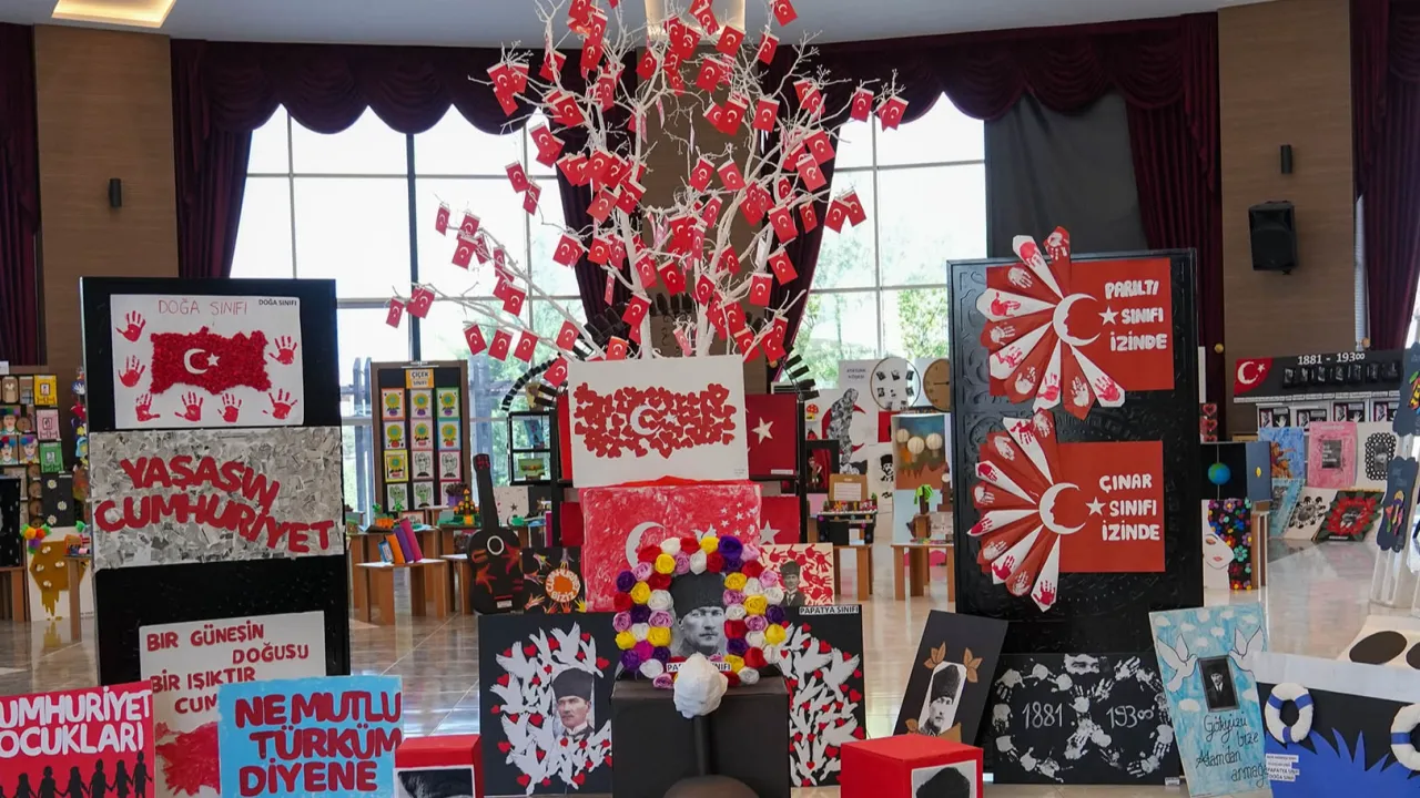 Püskürtme, gölgelendirme, quilling, filografi gibi birçok teknik kullanılarak yapılan çalışmalar büyük beğeni topladı. Atık malzemelerden oluşturulan oyuncaklar ve müzik aletleri ise serginin en dikkat çeken çalışmalarından oldu. Yıl sonu sergisinin en dikkat çeken köşesi ise Atatürk ve Cumhuriyeti anlatan eserlerin olduğu bölüm oldu. Çocuklarının yaptığı çalışmaları dikkatle inceleyen veliler duygu dolu anlar yaşadı.
