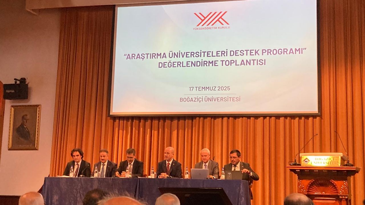 Geleceğe Yönelik Hedefler Konuşuldu Türkiye’nin öncü ve "Araştırma Üniversitesi" olan yükseköğretim kurumlarının rektörleri ile YÖK yetkililerinin bir araya geldiği toplantıda, üniversitelerin araştırma kapasitelerini artırmaya yönelik çalışmaları değerlendirildi. Ayrıca performans göstergeleri, bilimsel üretkenlik, ulusal ve uluslararası iş birlikleri gibi alanlarda geldiği noktalar ele alındı. Toplantı kapsamında, Araştırma Üniversiteleri Destek Programı’nın mevcut durumu, geleceğe yönelik hedefleri ve destek mekanizmaları masaya yatırılırken üniversiteler arası iş birliği ve iyi uygulama örnekleri de paylaşıldı.