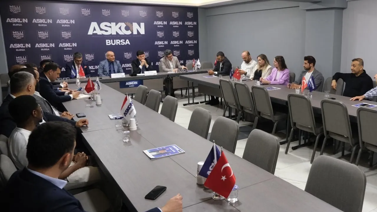Anadolu Aslanları İş Adamları Derneği (ASKON) Bursa Şubesi, ‘Milli Kalkınmanın Güçlü Buluşmaları’ toplantıları kapsamında, Bursa Sanayi ve Teknoloji İl Müdürü Aydın Bakoğlu’nu ağırladı.BURSA (İGFA) - ASKON Bursa Yönetim Kurulu Başkanı Emre Yıldız ve Yönetim Kurulu üyelerinin ev sahipliğinde gerçekleşen toplantıda, sanayi ve teknoloji alanındaki güncel gelişmeler, yatırım ve teşvik politikaları ile Ar-Ge destekleri gibi konular masaya yatırılırken, KOBİ'lere yönelik modern üretim alanlarının önemi vurgulandı.