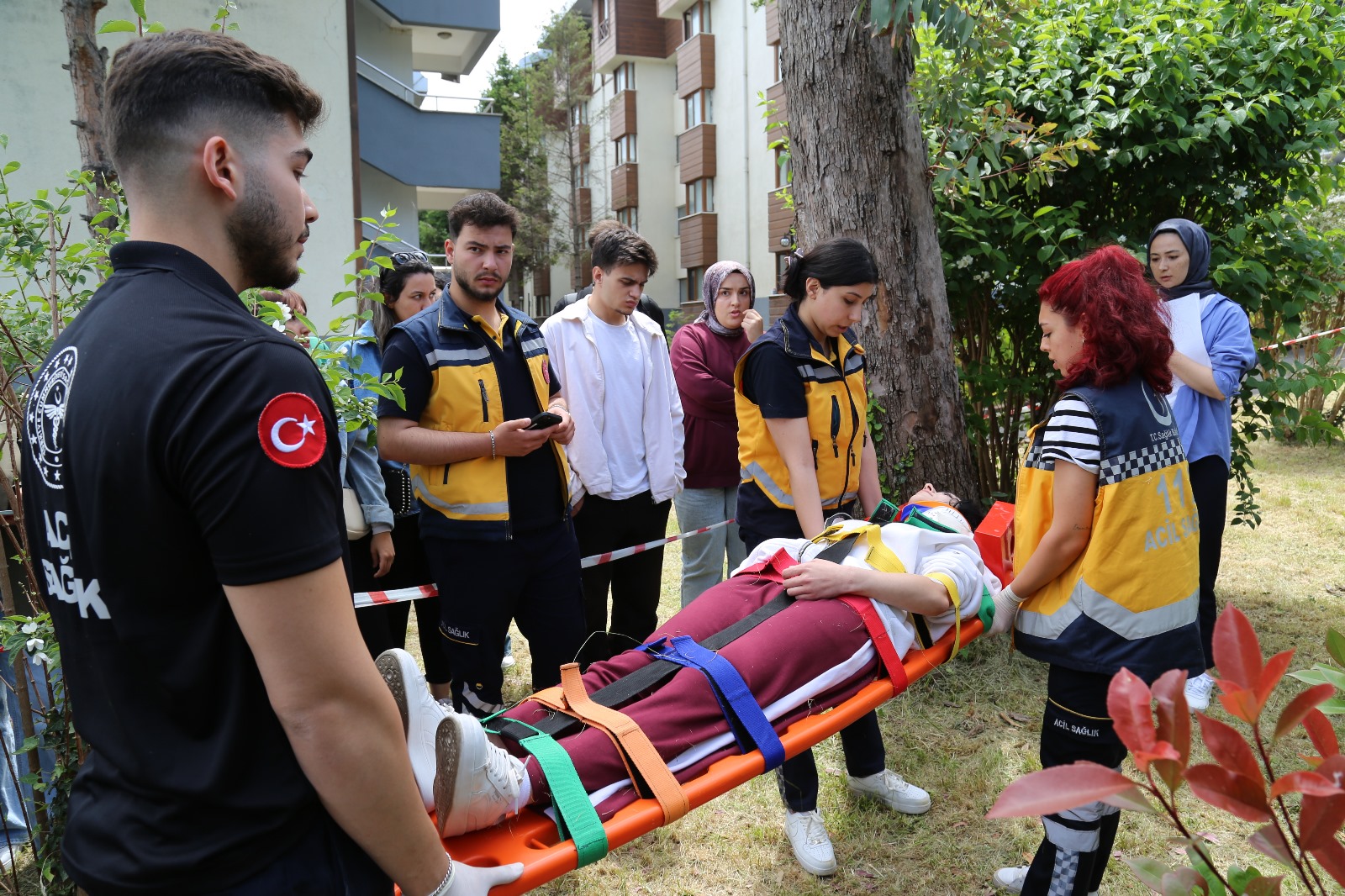 Tatbikat, Dr. Öğr. Üyesi İclal Şahin’in yönetiminde, Öğr. Gör. Ceren Şaşmazlar ve Acil Tıp Teknisyeni Mustafa Bilgin’in gözetiminde Ömer Yıldız Yerleşkesi’nde gerçekleştirildi. Öğrenciler sınıf ve laboratuvar ortamında edindikleri bilgileri uygulamalı olarak sergiledi. Yerleşkede bulunan öğrenciler de organizasyonu ilgiyle takip etti.