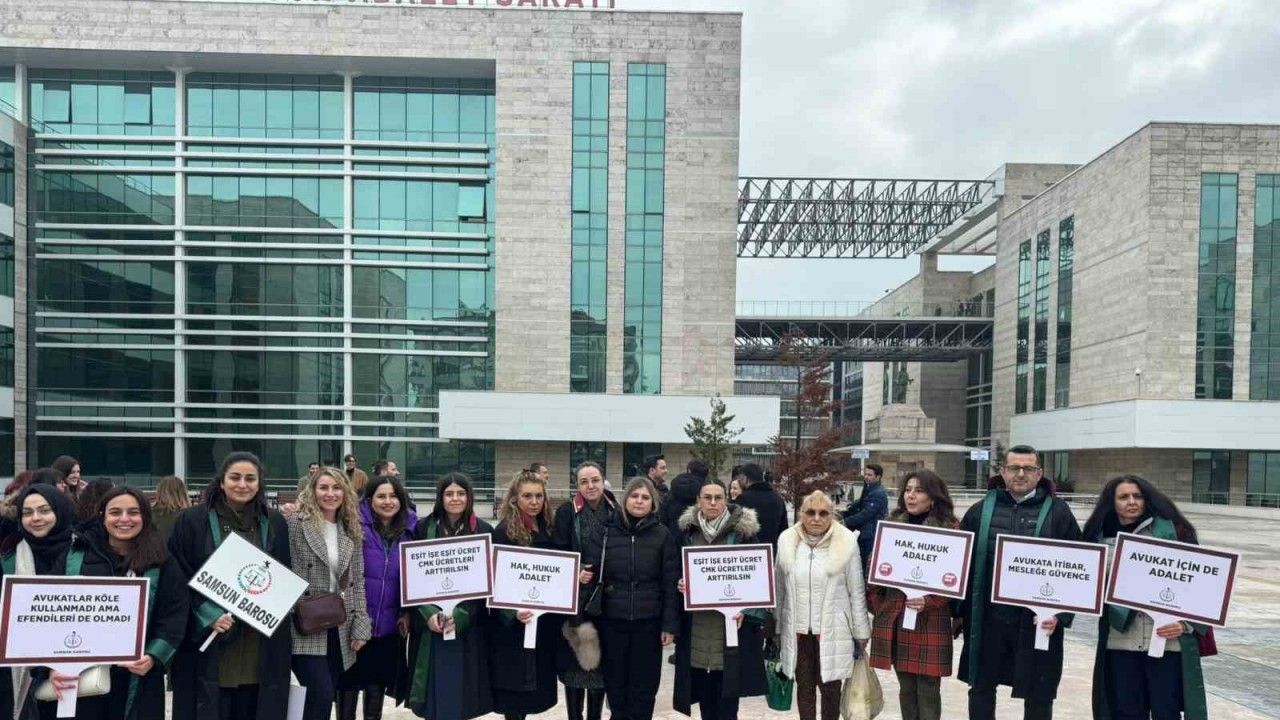 Samsun Adliyesi önünde bir araya gelen avukatlar, tarifenin gecikmeli yayınlanması ile yapılan yüzde 40’lık artışı eleştirdi. Burada avukatlar adına basın açıklamasında bulunan Samsun Barosu Yönetim Kurulu Üyesi ve CMK Komisyon Başkanı Av. Tuğçe Karadeniz, yapılan artışın tüm avukatları hayal kırıklığına uğrattığını belirtti. Av. Karadeniz, "Vatandaşların hakları için mücadele eden ve güveni bir nebze olsun diri tutmaya çalışan avukatlara böylesi düşük tutarların teklifi dahi kabul edilebilir değildir. Bizler yıllarca bekleyen dosyalarla uğraşırken, sanık tarafını adil bir karar verileceği, mağdur tarafı haksızlığın cezasız kalmayacağı, yakınları ise adalete güvenmeleri konusunda telkin ediyoruz. Görev başında saldırılara maruz kalıyor ancak yine de adaletin tecelli etmesi için var gücümüzle mücadele ediyoruz. Bizler mesleğimizin gereklerini yerine getirirken elimizden gelenin daha fazlasını yapmaya çalışıyor, bu uğurda fedakârlık yapmaktan da geri durmuyoruz. Ancak gelinen noktada ne yazık ki, bu emeklerin bir karşılığının olmadığını görmekten de büyük üzüntü duyuyoruz. Zorlu çalışma şartlarına rağmen görevimizi ifa etmeye çalışan bizlerin emeği görmezden gelinmektedir. 2025 Şubat ayı kira artış oranı bile yüzde 56,35 iken tarifeye yapılan zam yüzde 40 olmuştur" diye konuştu.