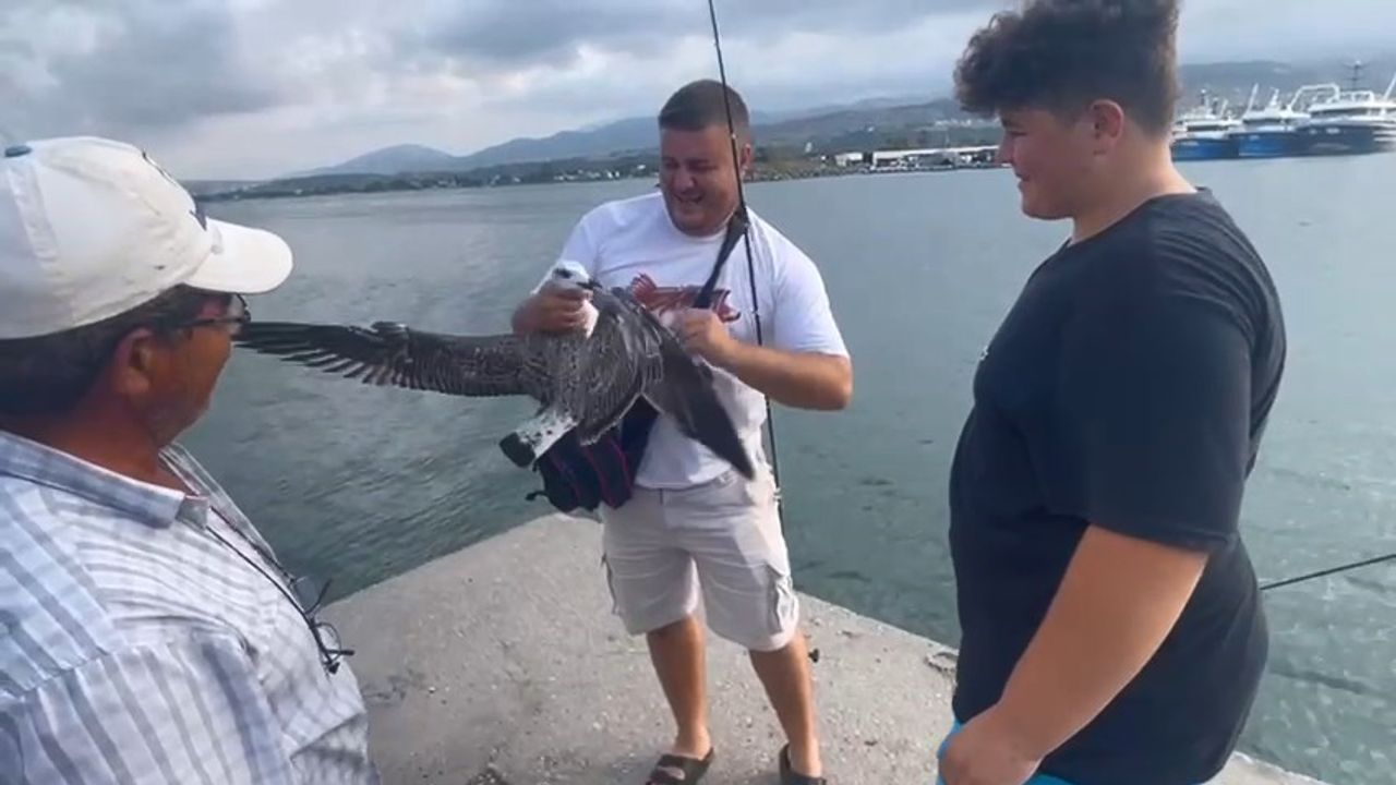 Balıkçı ise oltayı çıkarmak için dakikalarca uğraştı.