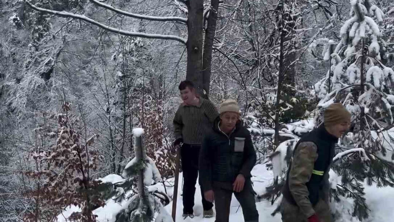 Bazı bölgelerde kar kalınlığı 10 santimetreye ulaşırken, bölgedeki orman işçileri kar ve soğuk havaya rağmen rağmen çalışmalarını sürdürüyor.