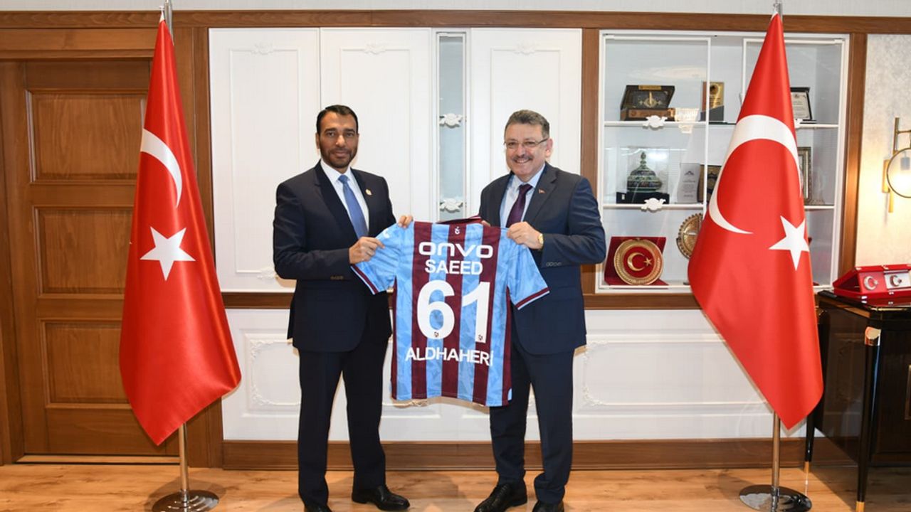 Büyükelçi Saeed Thani Al Dhaheri ise, “Burada çok güzel zaman geçireceğiz ve toplantılar yapacağız. Karşılamanız için teşekkür ederiz. Trabzon çok önemli bir şehir. Davetiniz güzel ve bir iş birliği olacak. Kendi turizm sezonumuz ekim ayından şubat ayına kadar sürüyor bundan dolayı çakışmamış oluyor. Kışın sizler geliyorsunuz, yazın bizler geliyoruz. Bu şekilde etkileşim artıyor. Bazı olumsuzluklar, fotoğrafın tamamını göstermiyor. Küçük şeyler ilişkilerimize engel olmasın. Vatandaşlarımız burayı evleri gibi gördükleri için yatırım yaptılar. Özellikle ilk geldiğim yer Trabzon ve burada çok mutluyum. Kendi evimde gibi hissediyorum. İlginiz ve alakanız için çok teşekkür ederiz” diye konuştu. Ziyarette, Başkan Genç, Büyükelçi Dhaheri'ye telkâri ve üzerinde ismi yazılı Trabzonspor forması hediye etti.