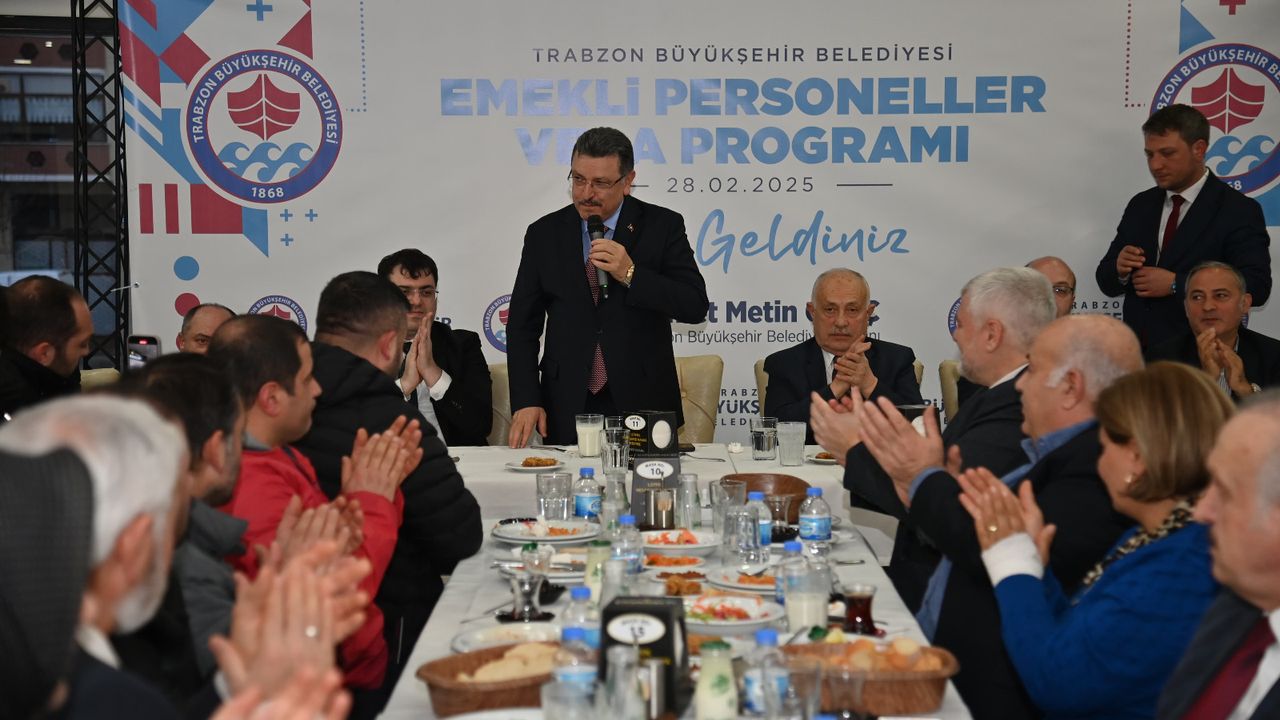 Trabzon Büyükşehir Belediye Başkanı Ahmet Metin Genç, Büyükşehir Belediyesi’nden emekli olan 78 personel için düzenlenen veda yemeğine katıldı. Emekliye ayrılan belediye çalışanlarına teşekkür eden Başkan Genç, bu buluşmanın bir veda değil, mesai arkadaşlığına duyulan saygının bir göstergesi olduğunu belirterek, "Kurumumuza yıllarını veren, alın teri döken kıymetli mesai arkadaşlarımıza müteşekkiriz. Bugün burada sadece bir yemek için değil, sizlere olan vefamızı ve minnettarlığımızı ifade etmek için toplandık. Belediyecilik, bir şehre duyulan sevdanın adıdır. Hepimiz Trabzon’a hizmet etme şerefine eriştik ve bu şehre değer kattık. Çalışma süreciniz boyunca gösterdiğiniz özveri ve bağlılık, bizler için çok kıymetli ve kutsaldır. Allah hepinizden razı olsun" dedi.