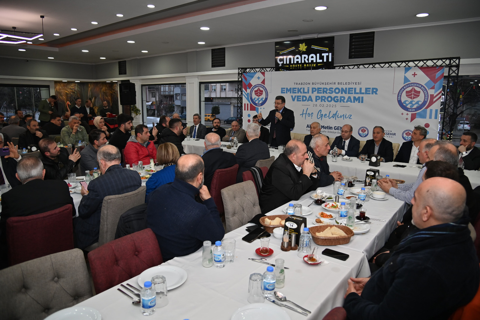Başkan Genç, “Bugüne kadar Trabzon’a hizmet eden ve ebediyete irtihal eden tüm mesai arkadaşlarımızı, başkanlarımızı ve yöneticilerimizi rahmetle anıyorum. Hayatta olanlara sağlıklı ömürler diliyorum. Onlar şehrimize emek verdiler, iz bıraktılar. Önemli olan, hizmetle ve hayır dua ile güzel anılmak. Bizler de görev süremiz boyunca bu anlayışla çalışmaya devam edeceğiz. Hepinize hayırlı, sağlıklı ve huzurlu bir emeklilik diliyorum. Ailelerinizle birlikte nice güzel günler yaşamanızı temenni ediyorum. Sizlerle her zaman bir arada olmaya devam edeceğiz” dedi. Program sonda Başkan Genç, emekliye ayrılanlara plaket takdim etti.