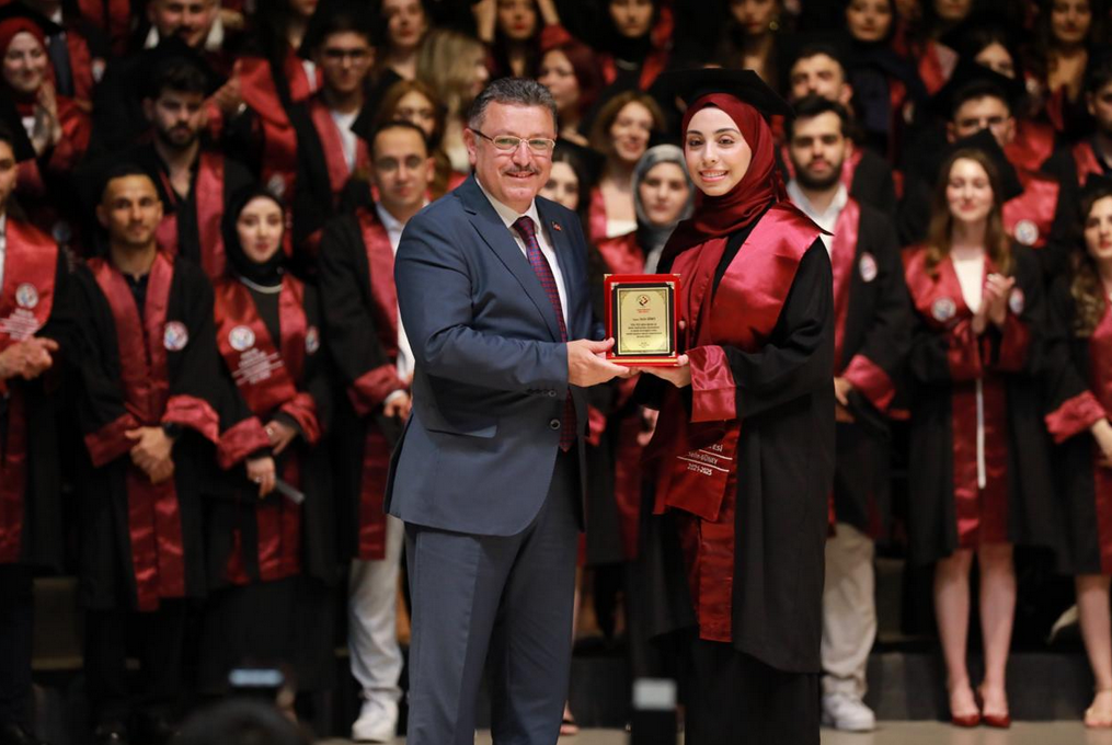 Başkan Genç, sözlerini şöyle tamamladı: “Kardeşlerimize şunu söylemek istiyorum: mutlaka yüksek lisansınızı yapın, akademik olarak yürüyün ve yabancı dilinizi geliştirin. Ülke yönetiminde mutlaka olun ve sahip çıkın. Tam milli ve bağımsız Türkiye yolunda biz güçlü olacağız ki etrafımızdaki gelişmelere de vaziyet edelim. Böyle bir yolculuk ve gelecek sizi bekliyor. Allah yolunuzu da, yıllarınızı da açık etsin.” Konuşmaların ardından dereceye giren öğrencilere plaket takdim edildi. Başkan Genç, Fakülte birincisi Selin Güney’e plaketini verdi ve başarı diledi.