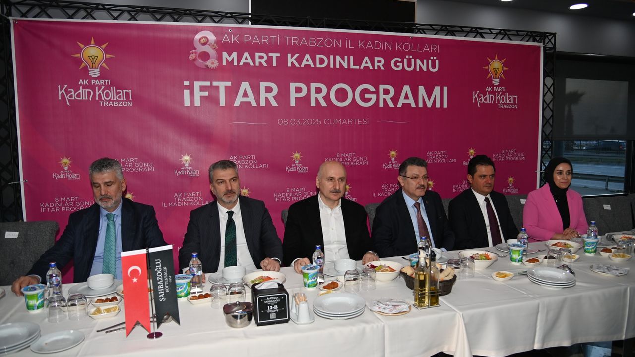 Trabzon Büyükşehir Belediye Başkanı Ahmet Metin Genç ve eşi Arzu Genç, 8 Mart Dünya Kadınlar Günü dolayısıyla AK Parti Trabzon Kadın Kolları tarafından düzenlenen iftar programına katıldı. Programa Başkan Genç’in yanı sıra önceki dönem Ulaştırma ve Altyapı Bakanı, TBMM Bayındırlık, İmar, Ulaştırma ve Turizm Komisyonu Başkanı ve Trabzon Milletvekili Adil Karaismailoğlu, AK Parti Trabzon Milletvekili Yılmaz Büyükaydın, AK Parti Trabzon İl Başkanı Sezgin Mumcu, AK Parti Kadın Kolları Başkanı Ayfer Cihan, AK Parti Yerel Yönetimler Başkan Yardımcısı Ayşe Sula Köseoğlu, AK Parti Ortahisar İlçe Başkanı Seyit Hisoğlu, meclis üyeleri, kadın muhtarlar, STK ve siyasi parti temsilcileri ile çok sayıda kişi katıldı.