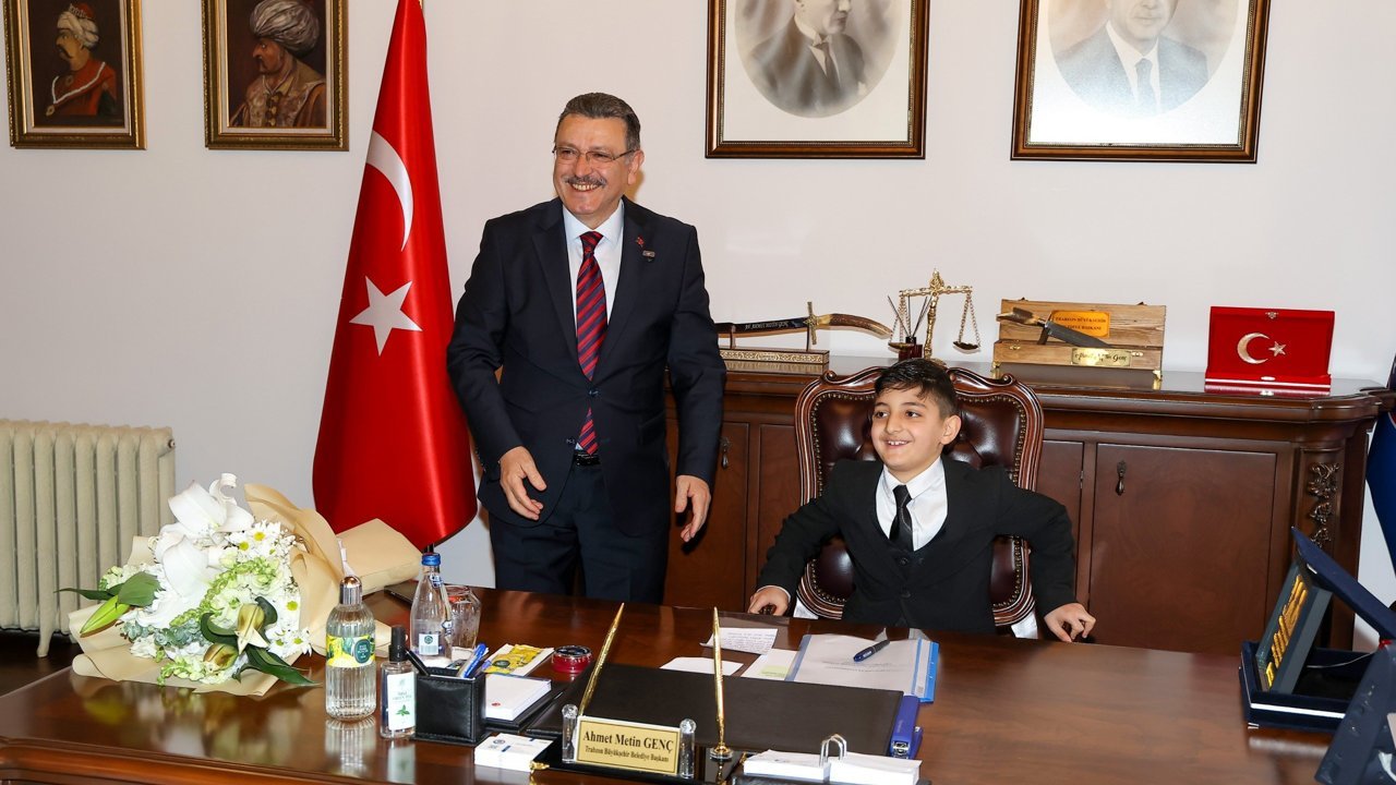 Trabzon Büyükşehir Belediye Başkanı Ahmet Metin Genç, 23 Nisan Ulusal Egemenlik ve Çocuk Bayramı kapsamında makam koltuğunu temsili olarak Dumlupınar İlkokulu 3-B sınıfı öğrencisi Hamza Arslan’a devretti. Büyükşehir Belediyesi’nde düzenlenen programa Hamza’nın yanı sıra sınıf arkadaşları da katıldı.