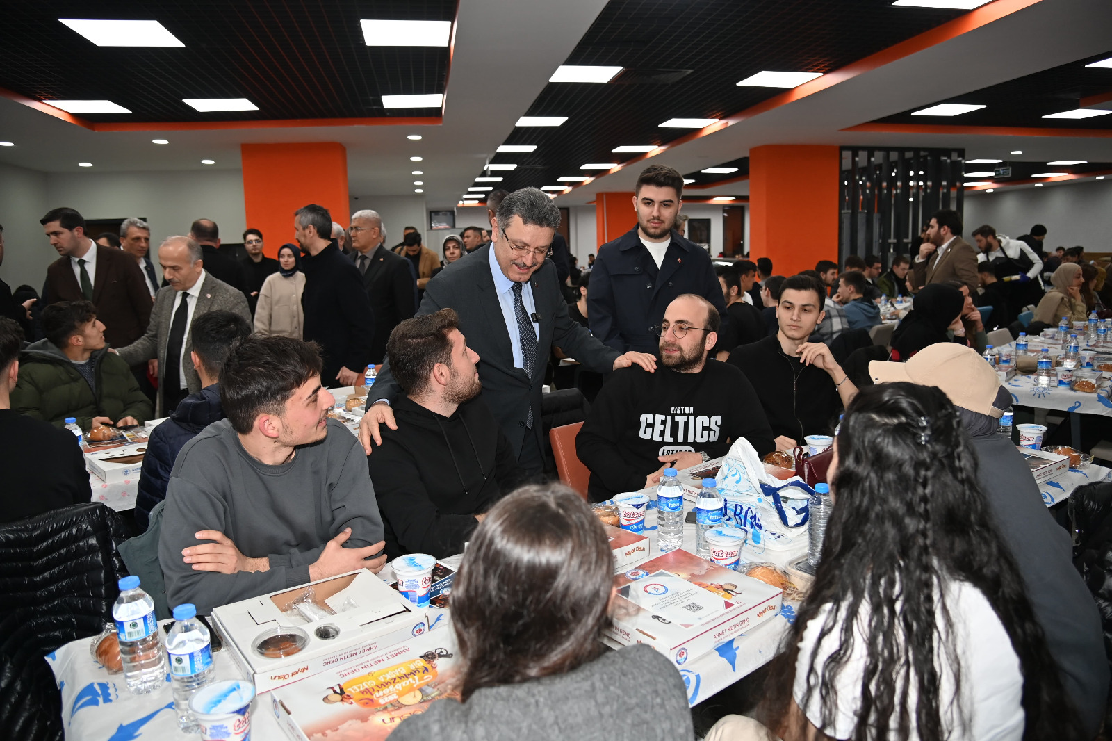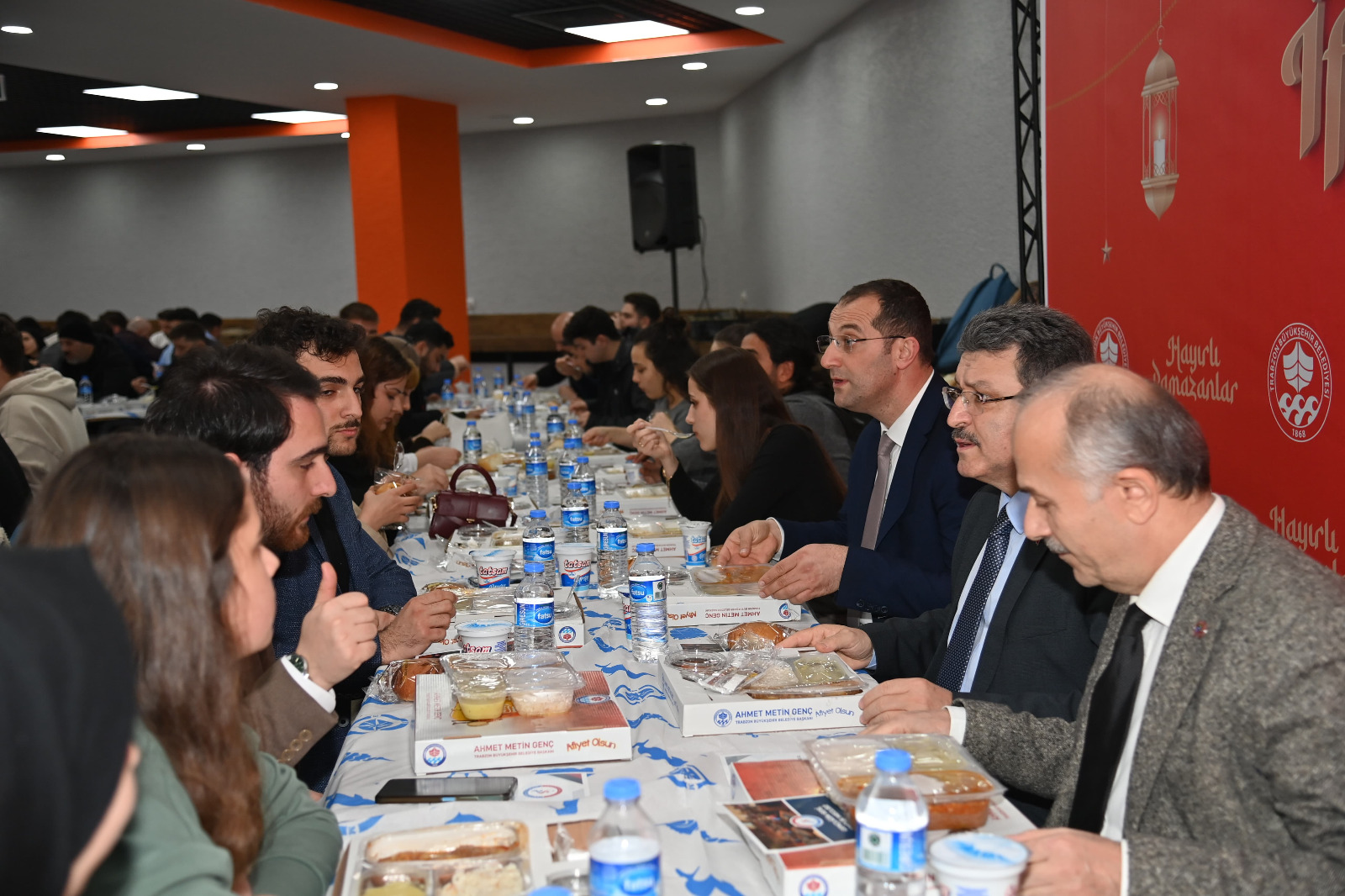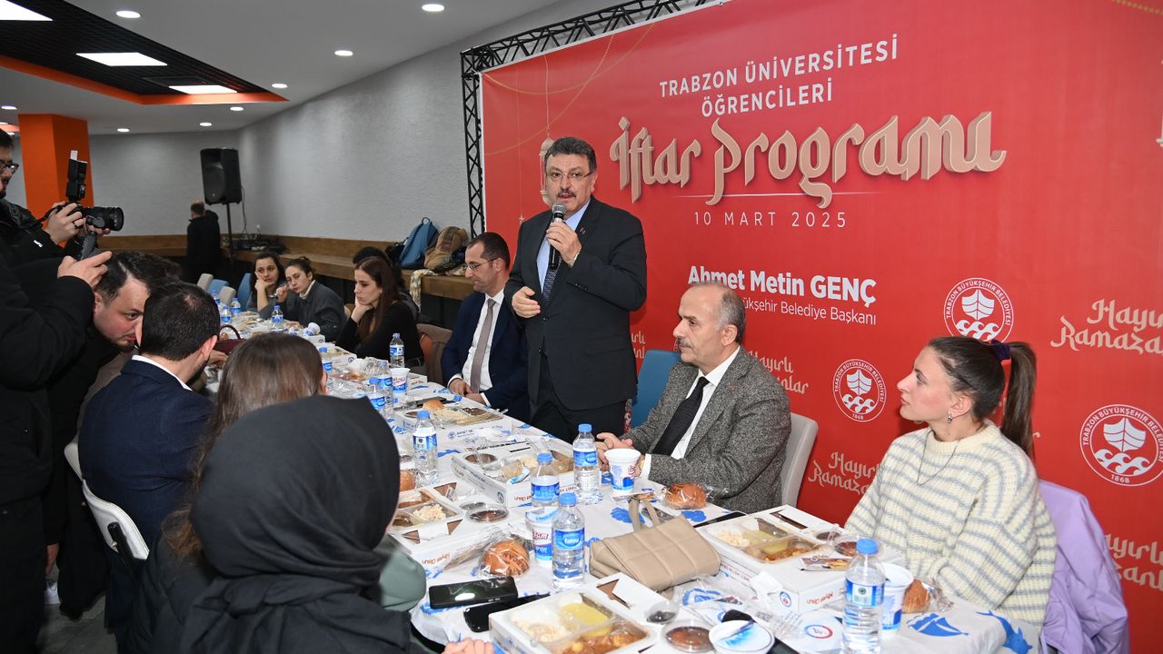 Trabzon Büyükşehir Belediye Başkanı Ahmet Metin Genç, Trabzon Üniversitesi’nde düzenlenen iftar programında öğrencilerle bir araya geldi. 500 öğrencinin yer aldığı programa Akçaabat Belediye Başkanı Osman Nuri Ekim, Trabzon Üniversitesi Rektörü Prof. Dr. Emin Aşık Kutlu, Trabzon Üniversitesi Rektör Yardımcısı ve Kent Konseyi Başkanı Hasan Karal, Trabzon Üniversitesi Rektör Yardımcısı Atilla Çimer, AK Parti Akçaabat İlçe Başkanı Muhammet Ali Yılmaz ve AK Parti Gençlik Kolları Başkanı Mahmut Çavuş katıldı. Başkan Genç, “Her yıl olduğu gibi bu yıl da Trabzon Üniversitesi’ndeki kıymetli öğrencilerimizle iftar soframızı paylaşmanın mutluluğunu yaşıyoruz. Bu buluşmalar, belediyemizin bir lütfu değil, sizlere olan sorumluluğumuzun bir gereğidir. Çünkü sizler sadece bugünün değil, yarının da teminatısınız. Türkiye’nin geleceğini inşa edecek nesil olarak omuzlarınızdaki yükün farkındayız ve bu yolda her zaman yanınızdayız. Büyükşehir Belediyesi olarak gençlerimizin her alanda destekçisi olmaya devam edeceğiz” dedi.