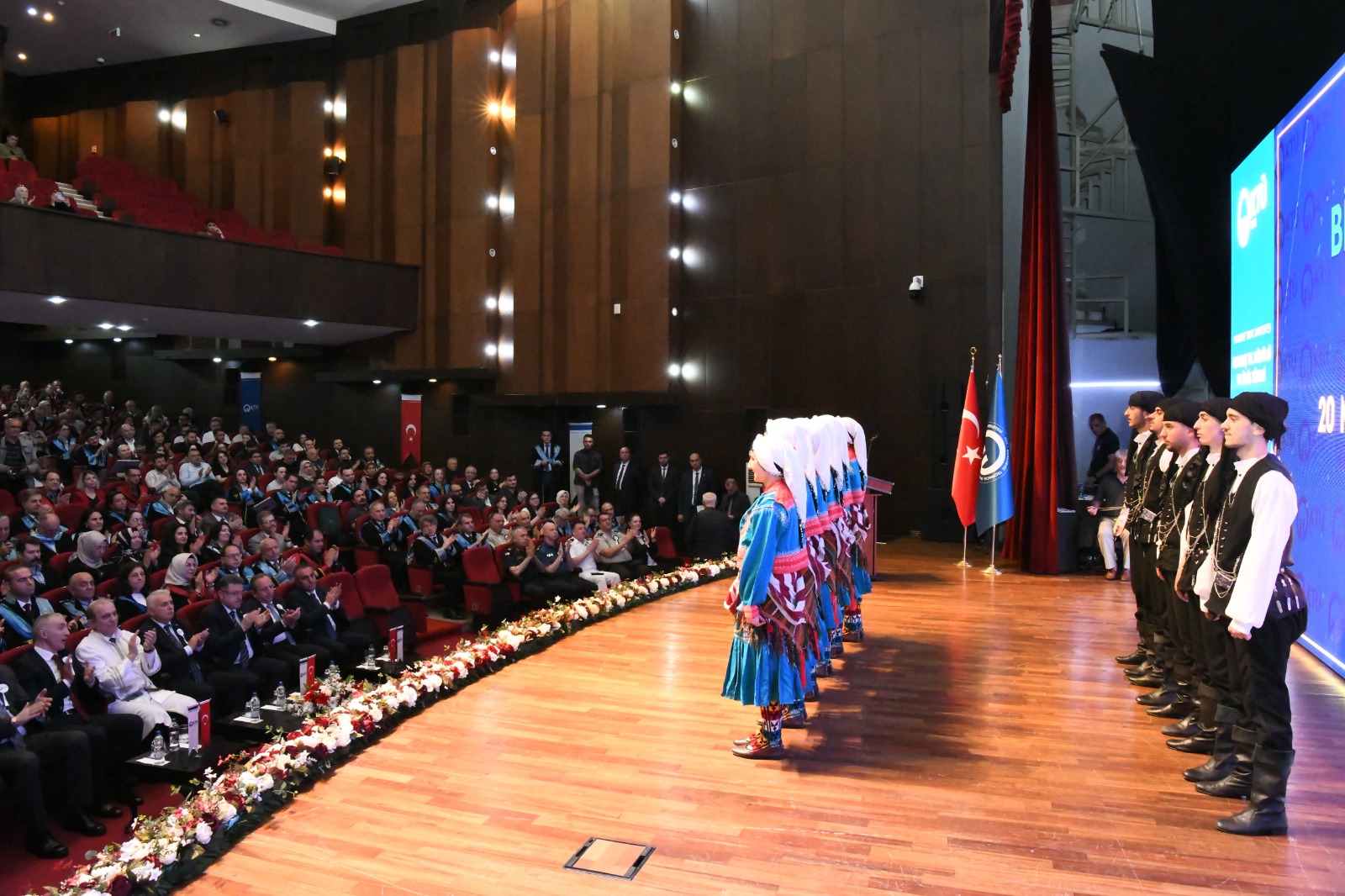 Başkan Genç, “Karadeniz Teknik Üniversitesinde okumak ve mezun olmak, çok anlamlı ve güzel. Şu anda bilgi çağındayız. Üç tane temel kavram var. Bunlardan en önemlisi bilgidir, bilgiye en hızlı erişen gücün sahibi oluyor ama aslolan bu güce sahip olduktan sonra o gücün nasıl kullanıldığı. Şu anda en önemli konu bu, sadece bilgi ve bilgiye hızlı ulaşmak yetmiyor. O gücü nasıl kullanacağız bu önemli. Yeryüzünde güce hızlı erişen devletler, bu gücü insanlığın faydasına kullanmıyor. Dolayısıyla o bilgiyi elde edeceğiz ama o bilginin yanında çok büyük bir kavram olan vicdana da ihtiyacımız var. En temel hak olan yaşama hakkı yerle yeksan olmuş durumda. Bir katil devlet olan soykırımcı İsrail’in bütün üniversitelerimizde lanetlenmesini istiyoruz. O nedenle bilgiye erkenden ulaşalım ama bizim medeniyetimizin değerlerine uygun olarak kullanalım. Vicdan burada bugünü ve geleceği inşa etmekte olan gençliğimizde. Dünya şu anda yeniden Türklerin insanlığa sunduğu medeniyeti bekliyor. Ben buna yürekten inanıyorum. Daha da güçlenerek o mazlum ve mağdurların hukukunu da koruma konusunda adımlar atacağız. Bir diğeri ise milli değiliz, bu da çok önemli. Ülkemiz 7-8 sene önce gayri-milli emperyalist güçlerin içerideki uzantıları tarafından bir işgalle karşı karşıya kalmıştır. O işgalin içerideki uzantıları, iş birlikçileri donanımlı ve liyakatli insanlardı ama liyakatli haindiler. O nedenle eğitim, bilgi, millilik ve vatanseverlik çok önemli. 19 Mayıs Atatürk’ü Anma, Gençlik ve Spor Bayramı’mızı kutladık. Bize bu toprakları ilelebet bağımsız Türk yurdu olarak emanet eden Cumhuriyetimizin Kurucusu Gazi Mustafa Kemal Atatürk ve silah arkadaşlarını rahmetle ve şükranla yad ediyoruz. Onların sayesinde bu millet esarete asla boyun eğmeyecektir” diye konuştu.