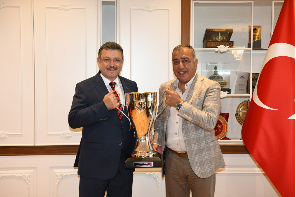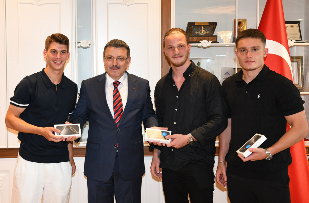 Türkiye Gelişim Ligleri Elit A Ligi'nde şampiyonluk elde eden ve UEFA Gençlik Ligi'nde Avrupa ikincisi olarak Türkiye’yi gururlandıran Trabzonspor 19 Yaş Altı Takımı, Trabzon Büyükşehir Belediyesi’ni ziyaret etti. Trabzonspor Yönetim Kurulu Üyesi Derviş Köz'ün de yer aldığı ziyarette Büyükşehir Belediye Başkanı Ahmet Metin Genç, makamında ağırladığı genç sporculara daha önce söz verdiği cep telefonlarını hediye etti. Başkan Genç, “Trabzonspor U19 takımımız bu yılki gururumuz oldu. Gençlerimiz adeta Türk futboluna mesaj verdi. Trabzon, tarih boyunca sporun ve sporcuların merkezi olmuş bir şehir. Bu başarılar, gençlerimizin ne kadar yetenekli ve azimli olduklarının en güzel göstergesidir. Bizler de Trabzon Büyükşehir Belediyesi olarak gençlerimizin yanında olmaya, onları desteklemeye devam edeceğiz. Daha önce söz verdiğimiz cep telefonlarını takdim etmekten mutluluk duyuyorum. Başarılarının devamını diliyorum; Trabzon’un adını hem ulusal hem de uluslararası arenada en iyi şekilde temsil edeceklerine inanıyorum” dedi. Başkan Genç ziyaretin sonunda gençlerle birlikte şampiyonluk kupasıyla fotoğraf çektirirken telefonlarını tek tek hediye etti.