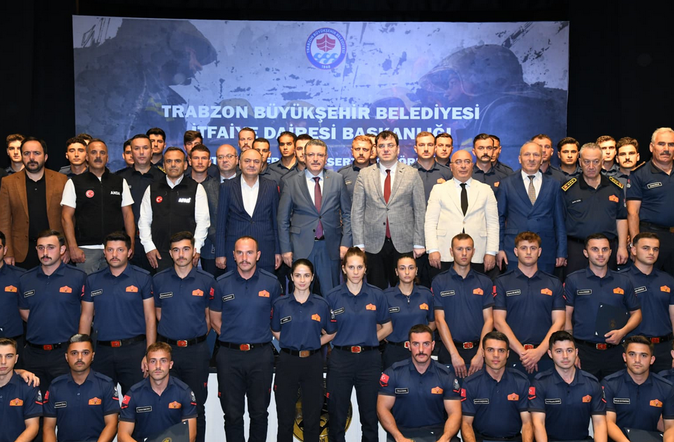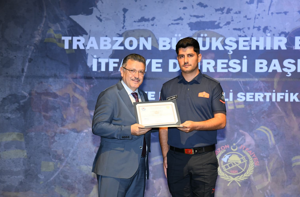 Trabzon Büyükşehir Belediye Başkanı Ahmet Metin Genç, İtfaiye Dairesi Başkanlığı bünyesinde çalışmak için eğitim alan itfaiye personelinin sertifika törenine katıldı. Başkan Genç, “Yeni vazifesine başlayan bütün kardeşlerime yürekten başarılar diliyorum. Belediye olarak birçok işle ilgileniyoruz. Halkımızın yaşam standardını daha yukarılara çekmek, daha iyi yaşamalarını sağlamak gibi görevimiz var. Her sorunun muhatabıyız, hizmet etmeye çalışıyoruz ama en önemli çalışma alanlarından bir tanesi halkımızın can güvenliğini ilgilendiren hizmetler. Bu manada öne çıkan en önemli birimimiz itfaiyemizdir” dedi.
