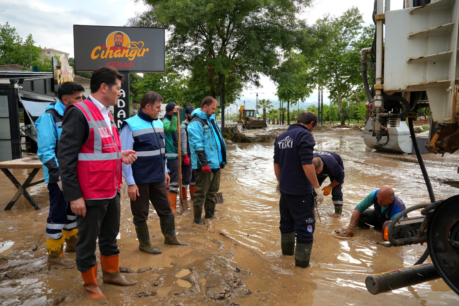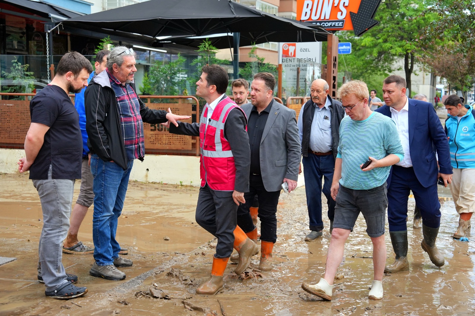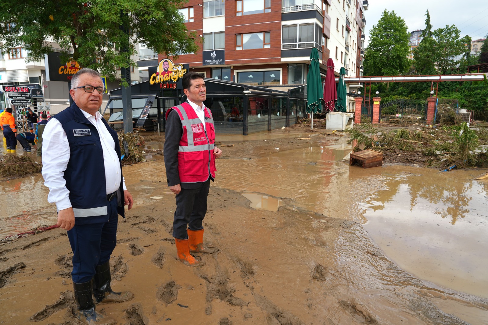 “Yüzleşmemiz gereken bir takım gerçekler var. Hemen şurada bir dere var, derenin önüne bir trafo binası koymuşuz. Kim koymuş, o sorulmalı. Ama trafo binası derenin akışını kesiyor, kesiti daralıyor ve trafo binasına çarpan sular geri dönüyor ve bütün binaları, işyerlerini sular basıyor. Bu tür ağır ihmallerden, hatalardan ders alıp bundan sonrasına ilişkin doğru belediyecilik, doğru imalatlar, doğru çalışmalar yapmak zorundayız. Ders dolu bir gün yaşıyoruz, umarım hepimiz buradan almamız gereken dersleri alırız. Bu şehrin dününde, geçmiş yıllarında izi olan insanlar da gereken dersleri alırlar ve bundan sonrasına ilişkin daha sağlıklı daha kalıcı çözümleri hep birlikte üretiriz, hiçbir vatandaşımızın mağdur olmasına izin vermeyiz. Biz bu anlayışla sahadayız, ekiplerimizle birlikte çalışmalarımızı yapıyoruz.”