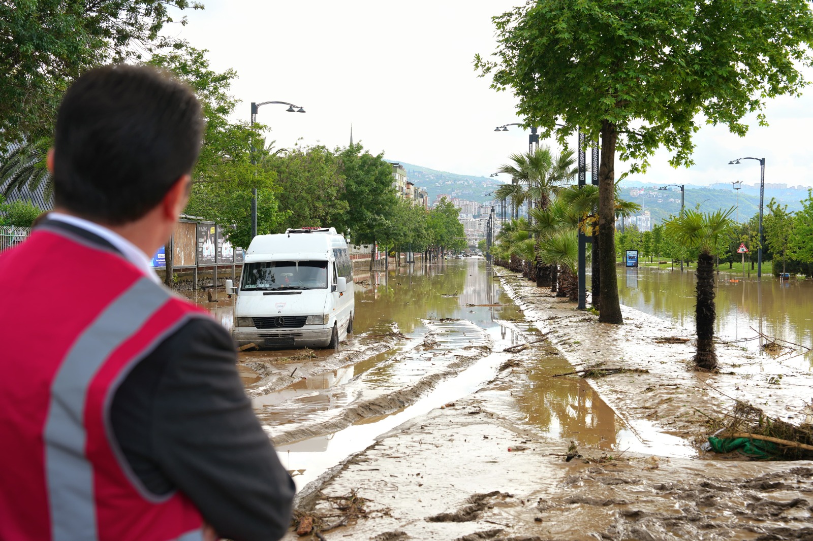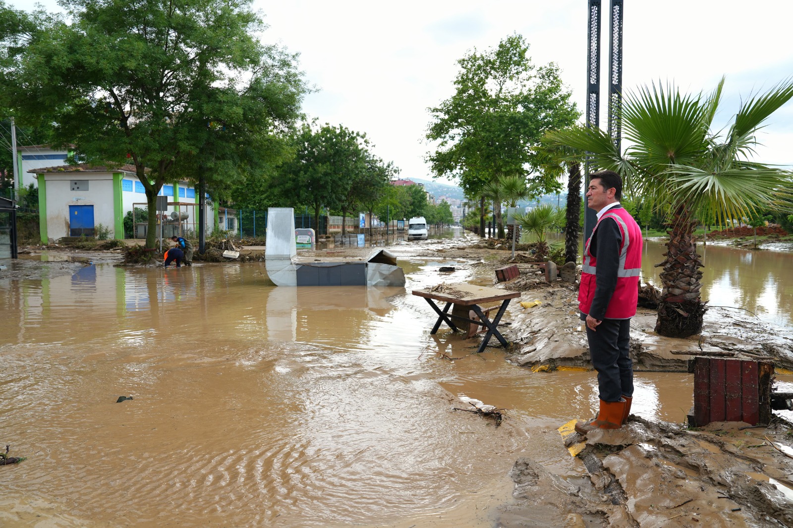 Beşirli ve Toklu mahallerinin sahilinde çok ağır bir tablo olduğunu dile getiren Başkan Kaya, “Çok şiddetli bir yağmur yağdı. Kısa bir süre içinde de metrekareye 63 kg gibi şiddetli bir yağmur yağdı. Allah’tan kısa bir periyodda yağdı, bir 15-20 dakika daha devam etseydi ‘halimiz nice olurdu’ diye düşünmeden edemiyor insan. Bütün hemşerilerimize, şehrimize ‘geçmiş olsun’ dileklerimizi iletiyorum. Biraz önce acı bir haber aldık, bir vatandaşımızın kayıp olduğu bilgisi geldi. Can kaybı olmamasına seviniyorduk ama bu acı haber çok üzücü oldu. Birçok işyerini sular bastı, heyelanlar oluştu. Beşirli sahilindeyiz, bütün dükkânlar hemen hemen sular altında. Çok acı, çok ağır bir manzara var” değerlendirmesinde bulundu.