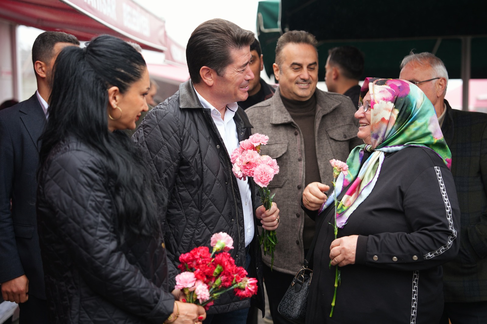 Anneler Günü’ne özel düzenlenen program dolayısıyla eşi Tuba Kaya ile birlikte önce Kireçhane ardından da Akoluk Köy Ürünleri Pazarı ve Kahvaltı Yeri’ni ziyaret eden Başkan Kaya, pazarlarda kendi ürettikleri sebze, meyve ve hayvansal gıdaların yanında yöresel yemeklerin satışını yapan emekçi kadınlara çiçek ve hediyeler vererek Anneler Günü’nü kutladı.