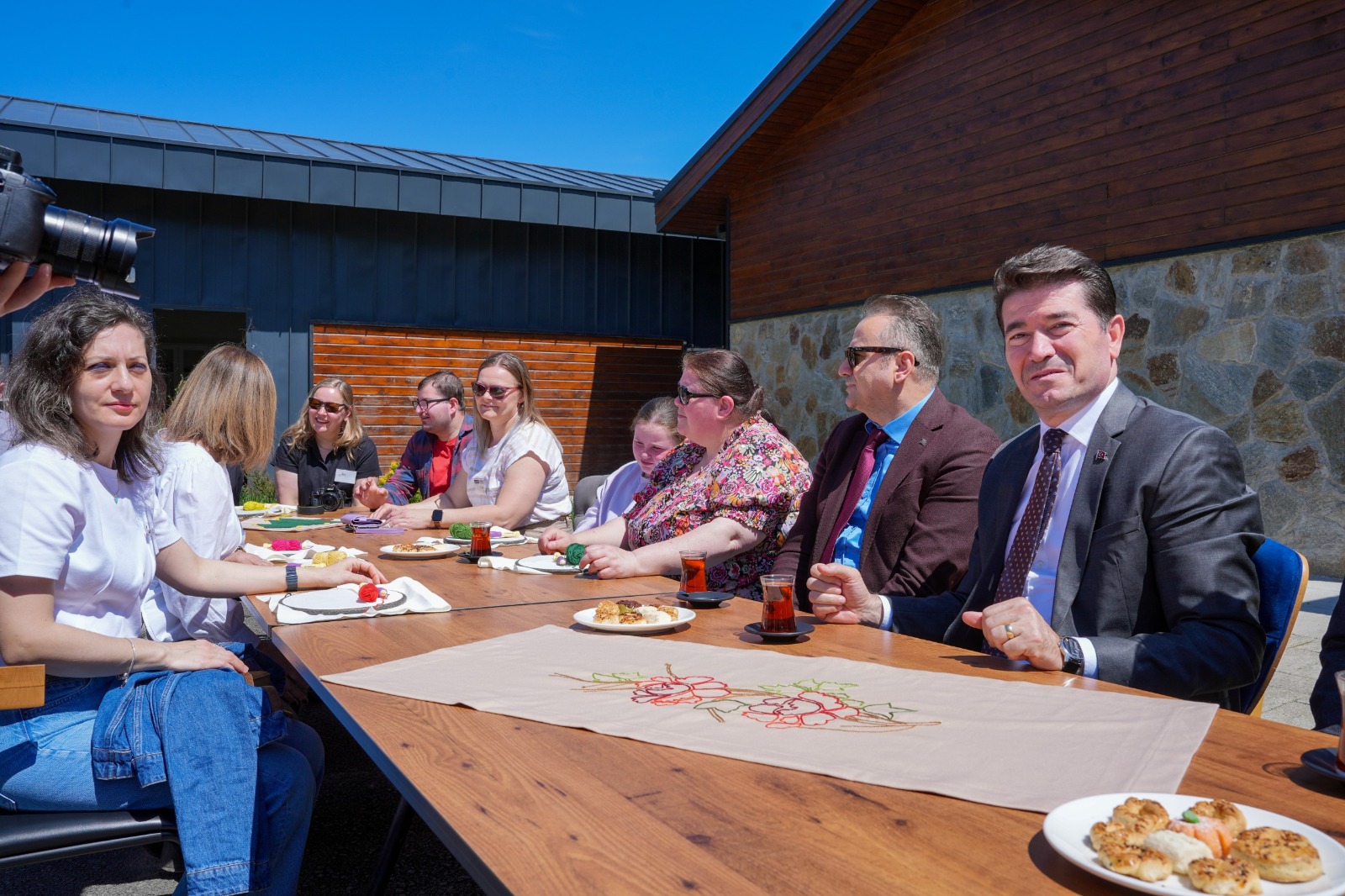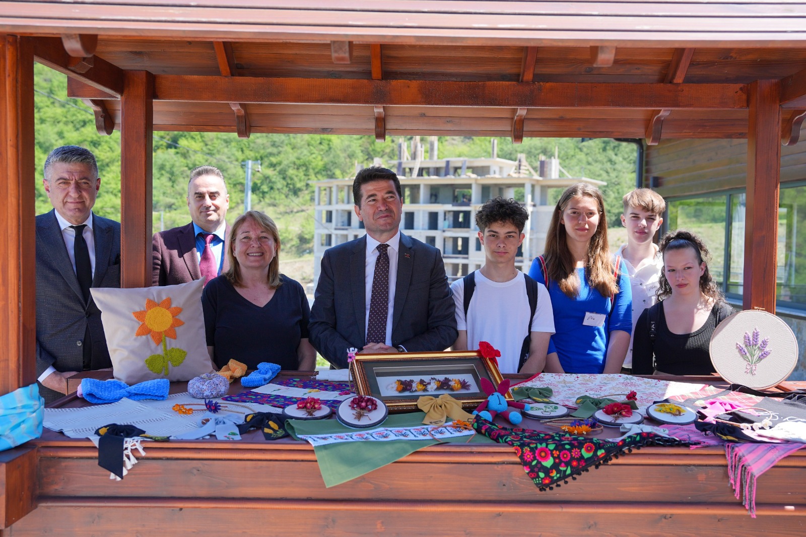 Başkan Kaya, misafir öğrenciler ile En Mutlu Köy yerleşkesindeki dokuma, tekstil ve ahşap atölyelerini gezdi ve öğrencilere atölyeler hakkında çeşitli bilgiler verdi. Macaristan, İrlanda ve Finlandiya ile Türkiye arasındaki kültürel bağların güçlenmesini hedefleyen projenin katılımcılarına, Trabzon’un kültürel kimliğini anlatan Başkan Kaya, öğrencilerle birlikte nakış işleme yaptı. Yabancı öğrencilerle En Mutlu Köy yerleşkesindeki seraları da gezen Başkan Kaya, burada üretilen tarım ürünleriyle ilgili bilgiler paylaştı, serada yetişen çileklerden toplayarak misafir öğrencilere ikram etti.