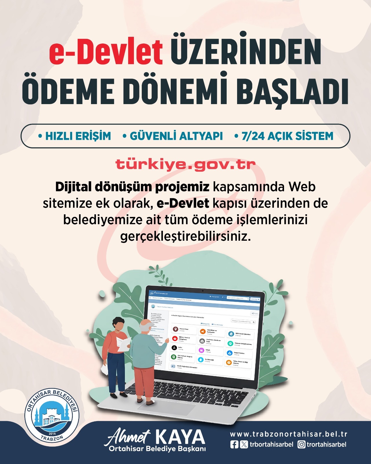 Ortahisar Belediye Başkanı Ahmet Kaya, dijital dönüşüm sürecini, belediyecilik hizmetlerinin dijital ortamlara taşınması ve vatandaşlara hızlı ve kolay hizmet sunumu için başlattıklarını ifade etti.