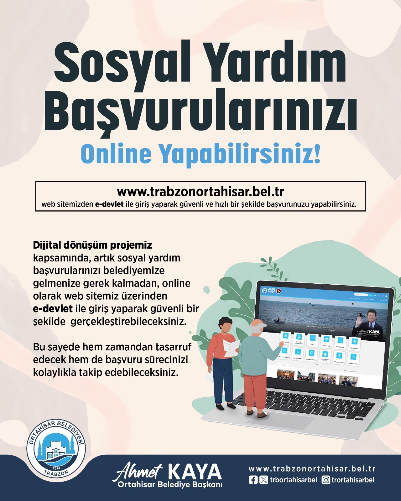 Ortahisar Belediyesi’nde belediyecilik hizmetlerinin vatandaşlara teknolojik ortamlarda sunulmasını amaçlayan dijital dönüşüm sürecinde, yeni uygulamalar halkın hizmetine sunuluyor. Yeni uygulamalarla vatandaşlar, sosyal yardım başvurularını online olarak yapabilecek, ödeme işlemlerini de e-devlet sistemi üzerinden hızlı ve güvenli bir şekilde gerçekleştirebilecekler.