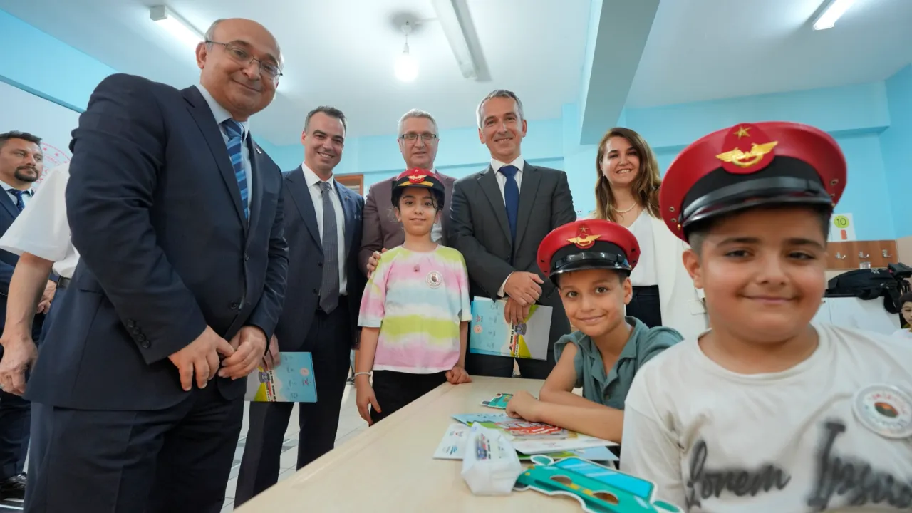 Her öğrenciye, kalemlik, boyama kitabı, kuru boya, rozet, silgi ve maskeden oluşan özel bir eğitim seti hediye edildi.