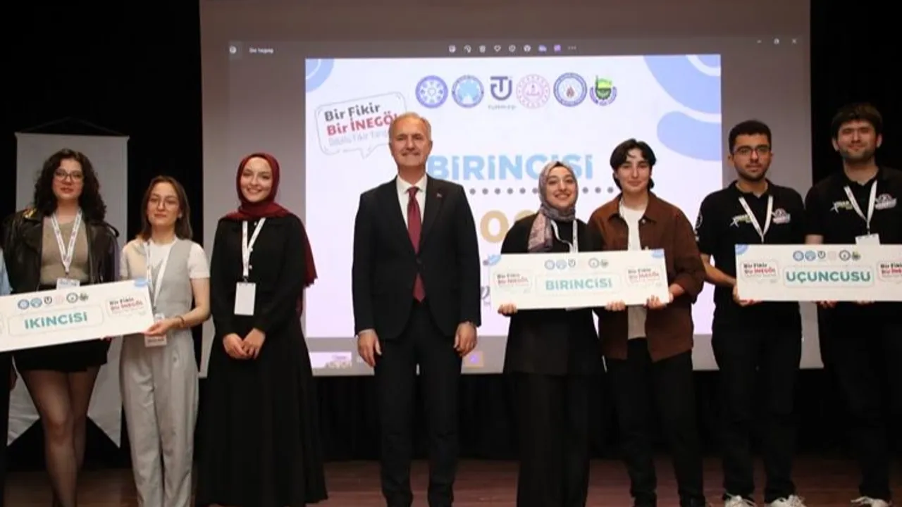 Bursa İnegöl Belediyesi organizasyonuyla lise ve üniversite öğrencilerine yönelik gerçekleştirilen “Bir Fikir Bir İnegöl” ödüllü fikir yarışmasının finali yapıldı.BURSA (İGFA) - Toplamda 53 projenin yer aldığı yarışmada dereceye giren projeleri hazırlayan öğrencilere ödülleri protokol üyeleri tarafından takdim edildi.