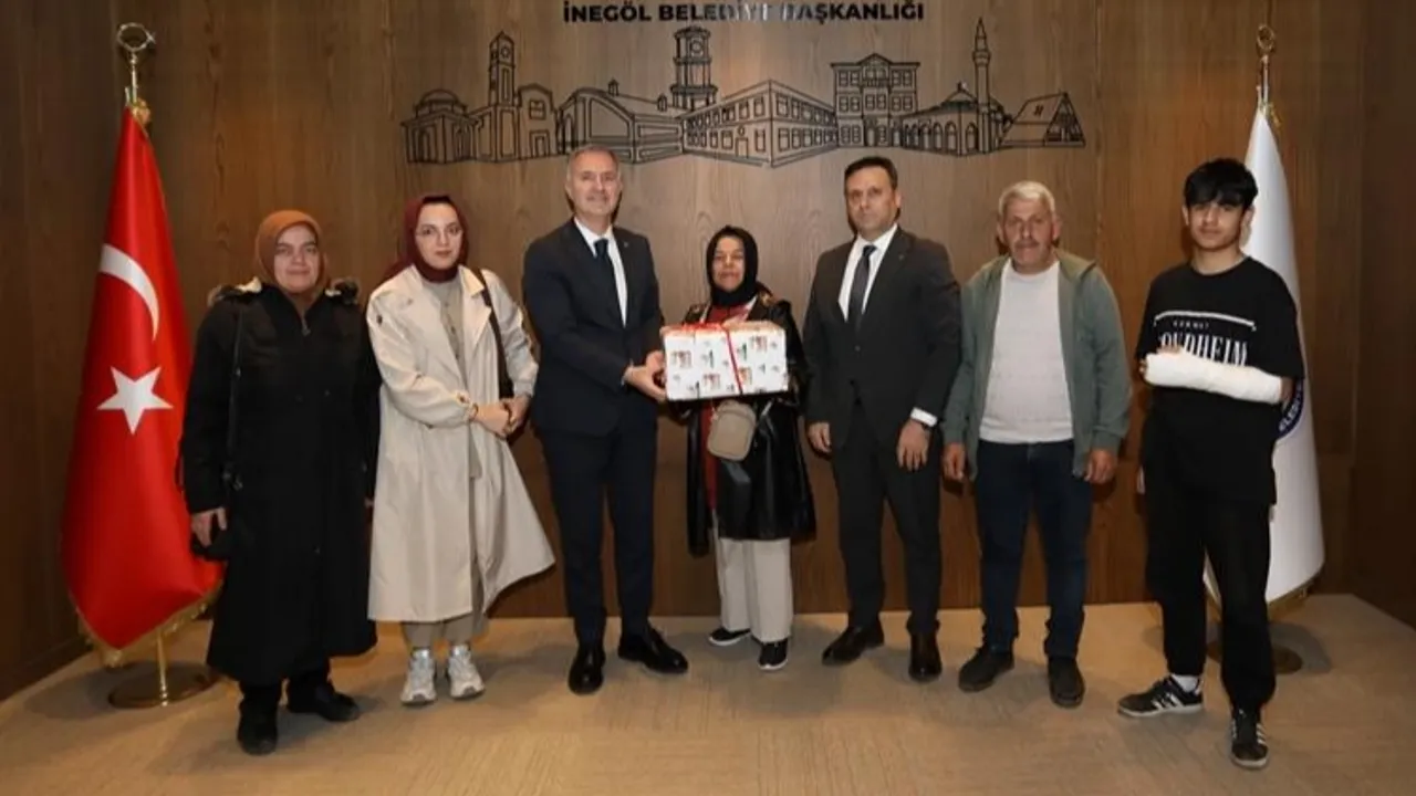 Atık yağ kampanyası birincisi Seher Dama, hediyesi olan kahve makinesini bugün İnegöl Belediye Başkanı Alper Taban’dan aldı. Başkanlık makamında gerçekleşen ziyarette Dama, farkındalık oluşturan yarışma için teşekkür etti.