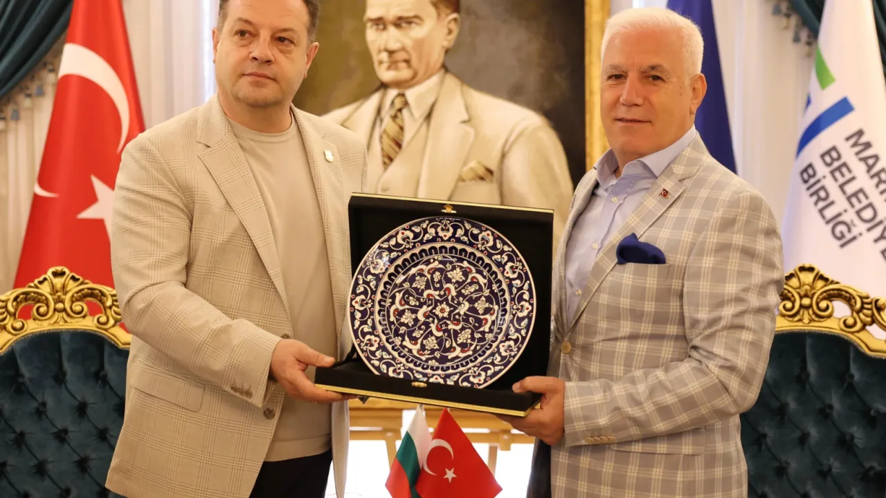 Görüşmenin ardından Başkan Mustafa Bozbey tarafından Panov’a günün anısına hediye takdim edildi.