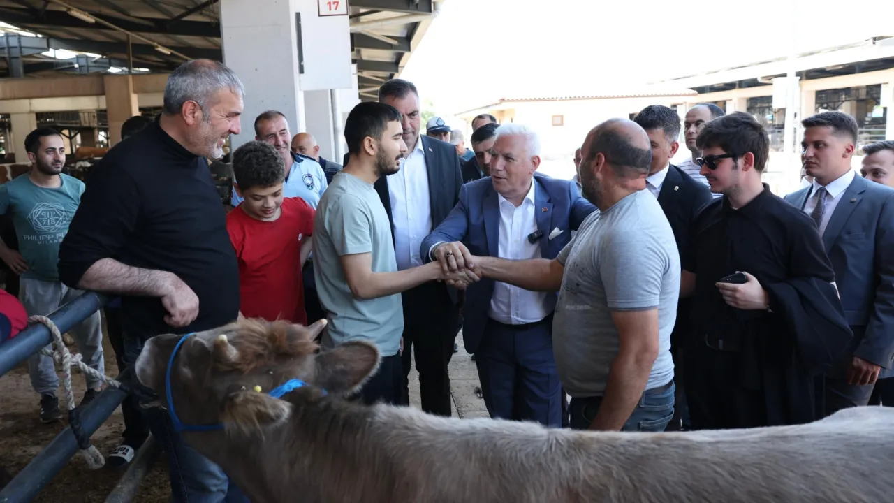Bursa Büyükşehir Belediye Başkanı Mustafa Bozbey, Osmangazi Belediyesi Kurban Pazarı’nı ziyaret etti. Kurbanlık satan esnafla sohbet eden Başkan Bozbey, vatandaşların kurban kesimi ve atıkların bertarafı konusunda hassasiyetle davranmasını istedi.BURSA (İGFA) - Bursa Büyükşehir Belediye Başkanı Mustafa Bozbey, Osmangazi Belediyesi’nin Veysel Karani Kurban Satış Yeri’ni ziyaret etti. Bayram öncesinde hem alışveriş yapan vatandaşlarla hem de esnafla sohbet eden Başkan Bozbey, alıcı ile satıcılar arasındaki kurban pazarlığına da aracılık etti.