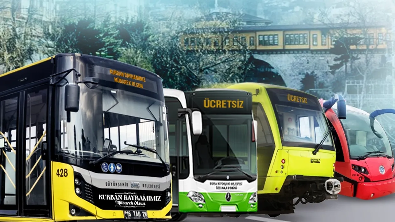 Bursa Büyükşehir Belediyesi, 6-9 Haziran tarihleri arasındaki Kurban Bayramı boyunca BursaRay, tramvay ve tüm otobüslerin ücretsiz olacağını açıkladı.BURSA (İGFA) - Bursa Büyükşehir Belediyesi, Kurban Bayramı’nda vatandaşların rahat ve huzurlu bir şekilde ziyaretlerini gerçekleştirebilmeleri amacıyla 6-9 Haziran tarihleri arasında BursaRay, tramvay ve tüm otobüslerin BursaKart kullanmak suretiyle ücretsiz olacağını açıkladı. Uygulama, kent içi ayakta yolcu taşıyan hatlarda geçerli olacak.