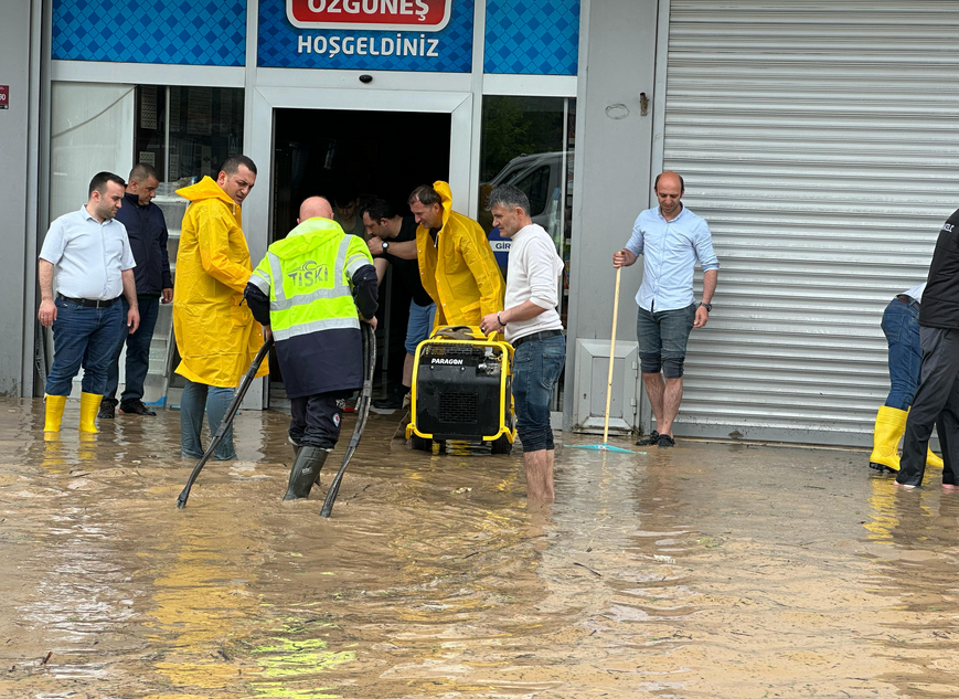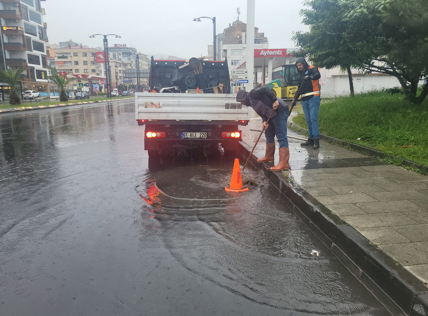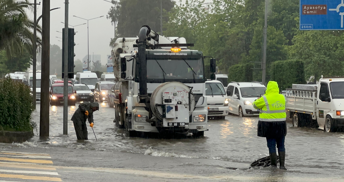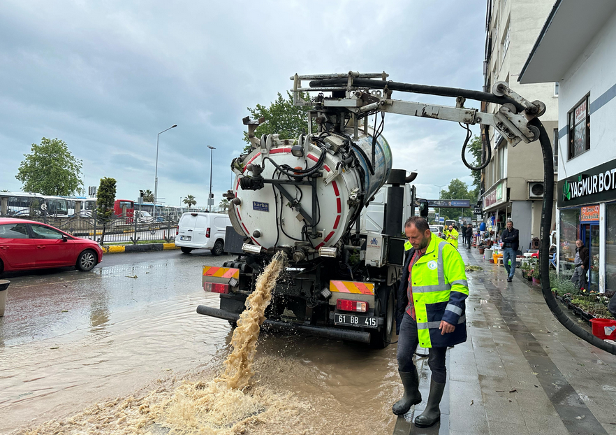 Trabzon Büyükşehir Belediyesi’nden yapılan açıklamada, "Aşırı yağış şehrimiz genelinde sel, toprak kaymaları ve su taşkınlarına neden olmuştur. Sabah saatlerinden itibaren 83 su taşkını ihbarı alınmış ve ekiplerimiz anında harekete geçmiştir. TİSKİ Genel Müdürlüğü, Yol Bakım ve Onarım, Park ve Bahçeler ile İtfaiye Dairesi başkanlıklarımıza bağlı 460 personel, 16 vidanjör, 20 kanal temizleme aracı, 4 kombine kanal açma aracı, 24 iş makinesi ve 50 araçla şehir genelinde çalışmalara devam ediyor. Vatandaşlarımızın, heyelan ve su taşkınlarının yanı sıra taşkınların yaşandığı noktalarda özellikle trafo ve direklerin bulunduğu yerlerde elektrik çarpmalarına karşı da dikkatli olmalarını rica ediyoruz” denildi.