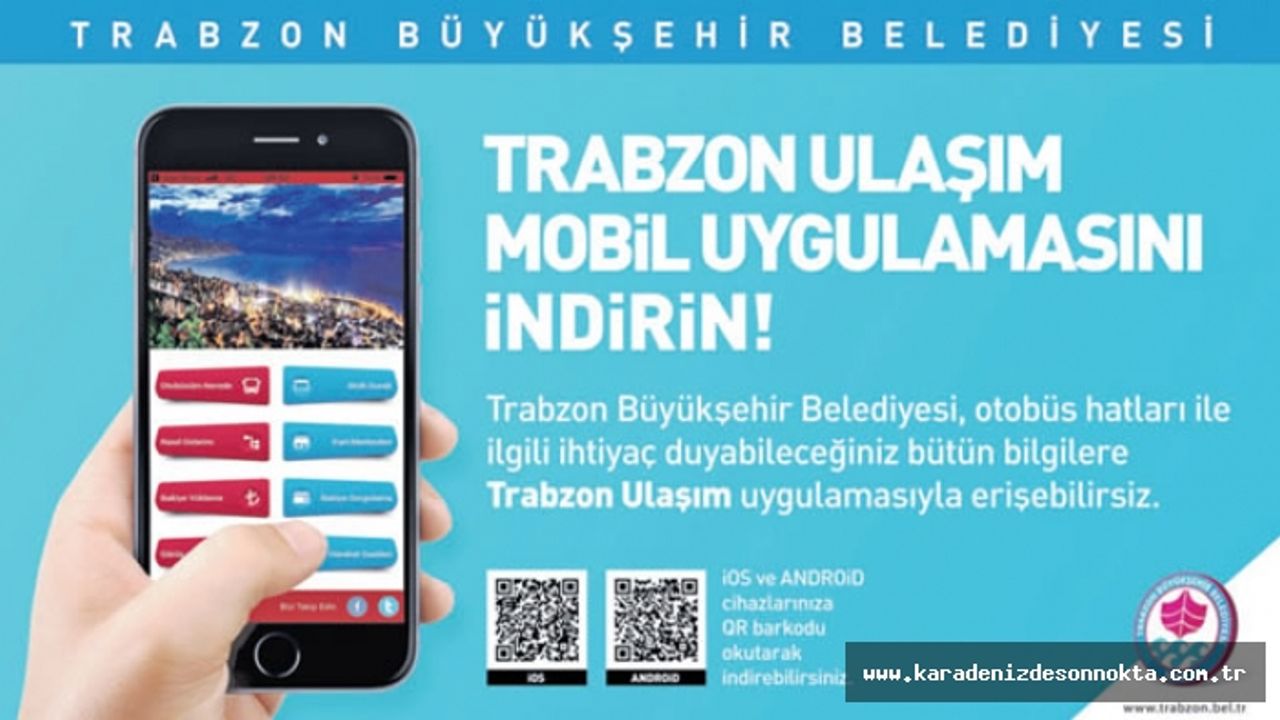 Trabzon Büyükşehir Belediyesinin uygulamaya koyduğu Trabzon Ulaşım Mobil Uygulaması, kullanıcılarına çok ciddi kolaylıklar sağlıyor. App Store ve Google Play’den indirilebilen Trabzon Ulaşım Mobil Uygulaması ile Trabzon Büyükşehir Belediyesi otobüs hatlarıyla ilgili ihtiyaç duyulabilen bütün bilgiler yeniden derlendi. Uygulamada; “Otobüsüm Nerede”, “Akıllı Durak”, “Nasıl Giderim”, “Kart Merkezleri”, “Kart Bakiye Sorgulama”, “Otobüs Hareket Zamanları” ile “Görüş Ve Öneriler” modülleri bulunuyor.