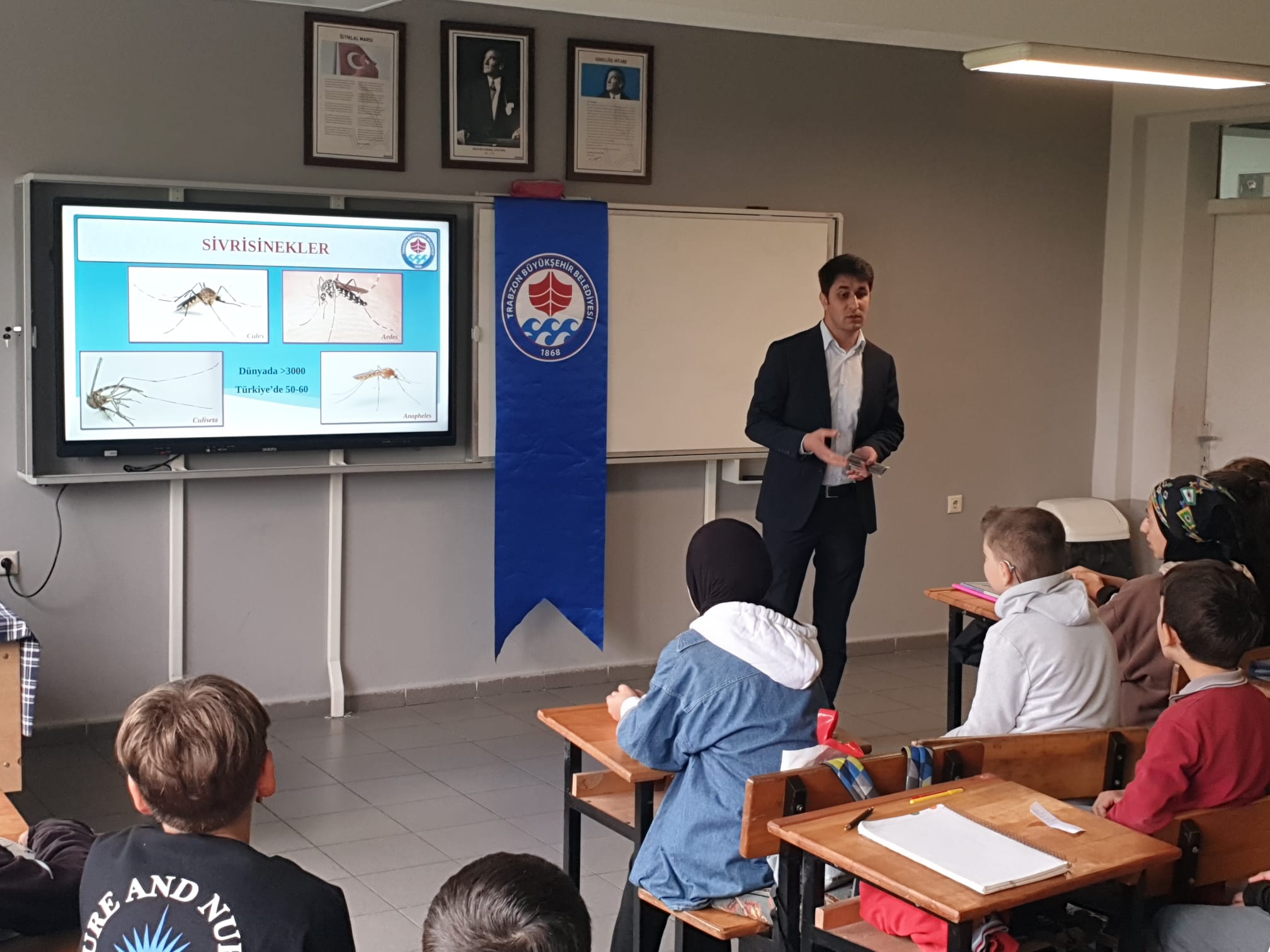 Trabzon Büyükşehir Belediyesi, eğitim faaliyetlerini aralıksız sürdürüyor. Tarımsal Hizmetler Dairesi Başkanlığı ve İl Milli Eğitim Müdürlüğü iş birliğinde 18 ilçede belirlenen 35 okulda eğitim programı gerçekleştirildi. Veteriner hekim ve ziraat mühendisleri tarafından toplam bin 450 öğrenciye “vektörle mücadele" (hastalık taşıyan canlılar) ve sokak hayvanları” konulu eğitim verildi. Öğrencilere eğitimlerde hayvan sevgisini aşılanırken hayvanlarla doğru iletişim, bedensel dilinin anlaşılması, nazik ve sakin yaklaşımın benimsenmesi, ses tonu ve konuşmanın uygunluğu, göz teması kurmada dikkat edilmesi gerekenler ve vektörle mücadelede sivrisinek, karasinek, hamamböceği, kemirgen gibi vektörlerin nasıl çoğaldıkları, bu canlıların insan sağlığı üzerindeki etkileri konusunda bilgiler verildi.