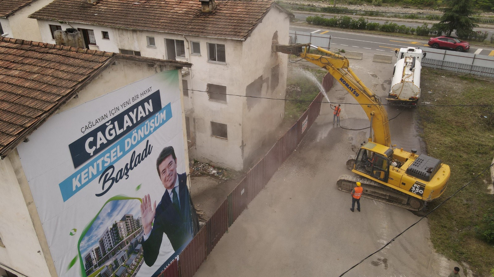 Konuşmaların ardından Ortahisar İlçe Müftüsü Özcan Yılmaz'ın duasıyla ilk yıkım, Başkan Kaya’nın “Haydi Bismillah” diyerek iş makinelerine komut vermesiyle başlatıldı.