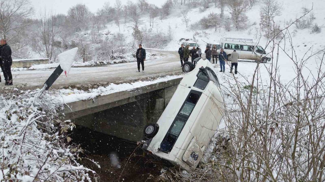 Kaza, Çamyatağı Mahallesi’nde sabah saatlerinde meydana geldi. Edinilen bilgiye göre, İstanbul’dan cenazeye gelen Sinan K. yönetimindeki 34 AV 7345 plakalı minibüs, Şeyhali mevkisinde Kavaklı Çayı üzerindeki korkuluğu bulunmayan köprüden aşağıya devrildi. Kar ve buzlanma nedeniyle meydana gelen kazanın ardından bölgeye jandarma, itfaiye ve sağlık ekipleri sevk edildi.
