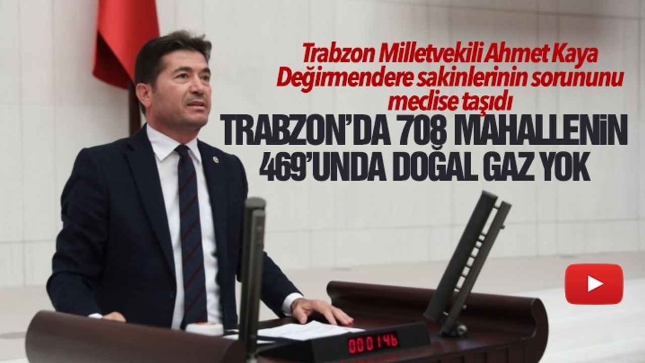 Cumhuriyet Halk Partisi (CHP) Trabzon Milletvekili Ahmet Kaya, TBMM Genel Kurulu’nda yaptığı konuşmada Trabzon Ortahisar Değirmendere Mahallesi sakinlerinin doğal gaz talebiyle yaptıkları eylemi Meclis gündemine taşıyarak, “Trabzon’un 7 ilçesinde; 708 mahallesinin 469’unda gazın “G”si yok. Doğal gaz öncelikli bir ihtiyaçtır ve vatandaşlarımızın bir an önce doğal gaza kavuşması sağlanmalıdır.” dedi.