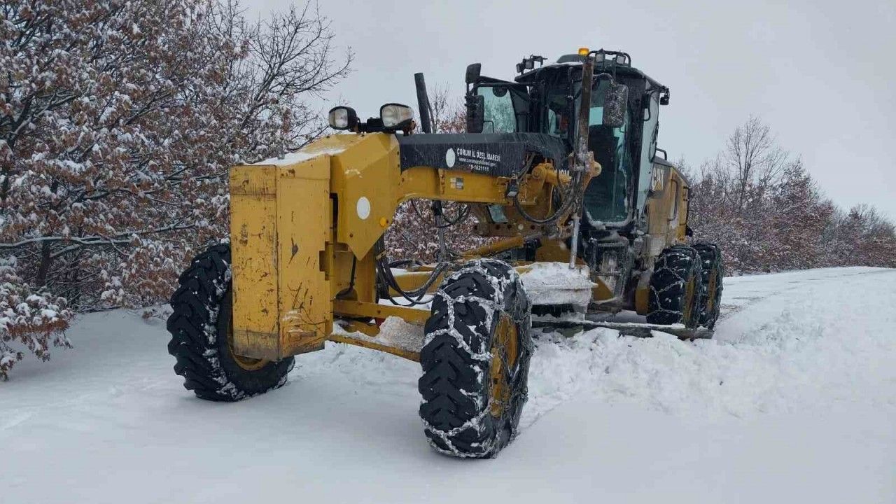 Çorum’da etkili olan yoğun kar yağışı nedeniyle kapanan köy yollarının ulaşıma açılması için İl Özel İdaresi ekipleri çalışmalarını sürdürüyor.