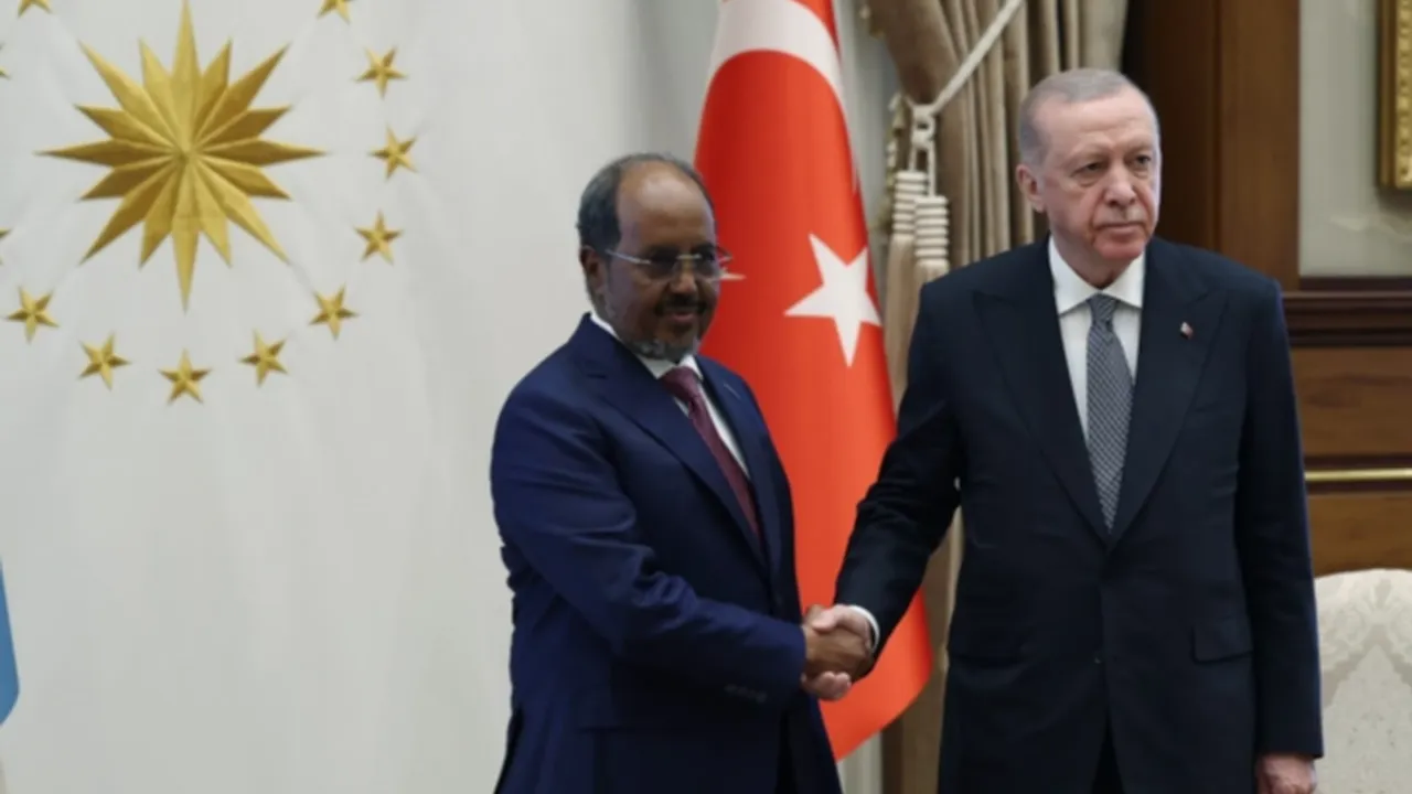Cumhurbaşkanı Recep Tayyip Erdoğan, Somali Cumhurbaşkanı Hasan Şeyh Mahmud ile Cumhurbaşkanlığı Külliyesi’nde bir görüşme gerçekleştirdi.ANKARA (İGFA) - Türkiye ve Somali ikili ilişkileri ile bölgesel konular ele alındığı görüşme ile ilgili ayrıntı İletişim Başkanlığı'ndan geldi.