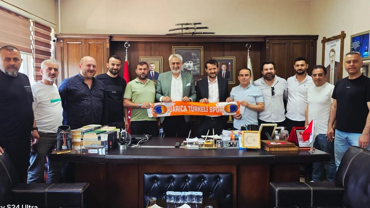 Bölgesel Amatör Lig’in yeni ekibi Darıca Türkelispor, geçtiğimiz hafta sonunda yapılan kongrede yeniden başkanlığa seçilen Kocaeli Amatör Spor Kulüpleri Federasyonu başkanı Murat Aydın’a hayırlı olsun ziyaretinde bulundu.KOCAELİ (İGFA) - Geçtiğimiz sezon tarihi bir başarıya imza atarak Bölgesel Amatör Lig’e yükselen Darıca Türkelispor, Kocaeli Amatör Spor Kulüpleri Federasyonu Başkanı Murat Aydın’a hayırlı olsun ziyaretinde bulundu. Ziyarette Kulüp Başkanı Ferhat Yılmaz ve yönetim kurulu üyeleri hazır bulundu. Murat Aydın’ın futbol ailesine bu zamana kadar ki katkılarına dikkat çeken Başkan Yılmaz, “Sayın Başkan Murat Aydın, engin tecrübelerini yeni dönemde de yansıtarak spor camiasına katkı sunmaya devam edecektir. Kongre sonuçlarının hayırlı olmasını diliyor, Murat Başkanımız ve ekibine başarılı bir dönem diliyorum” dedi.