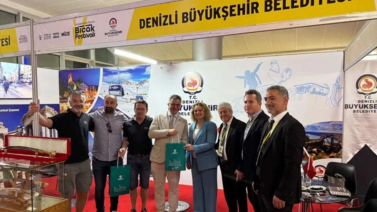 Denizli Büyükşehir Belediyesi, Serinhisar/Yatağanlı bıçak üreticileri ile birlikte Bursa Büyükşehir Belediyesi ev sahipliğinde düzenlenen Uluslararası Bursa Bıçak Festivali’ne güçlü bir katılım sağladı.DENİZLİ (İGFA) - Bursa Atatürk Kongre ve Kültür Merkezi (Merinos) yerleşkesinde gerçekleşen festivalde, Denizli Büyükşehir Belediyesi Kültür ve Sosyal İşler Dairesi Turizm Tanıtım Şube Müdürlüğü, Denizli’nin kültürel değerlerini ve yerel ürünlerini tanıtarak büyük ilgi topladı. Festival boyunca Denizli standı ziyaretçilerin uğrak noktası olurken, Pamukkale, Karahayıt, antik kentler ve doğal güzelliklerin tanıtımı yapıldı. Ziyaretçilere yöresel ürünlerimizden gazoz, Çalkarası kuru üzüm ve Serinhisar leblebisi ikram edildi. Ayrıca sembolik Yatağan çakısı da hediye edilerek, katılımcılara tanıtım filmleri izletildi.