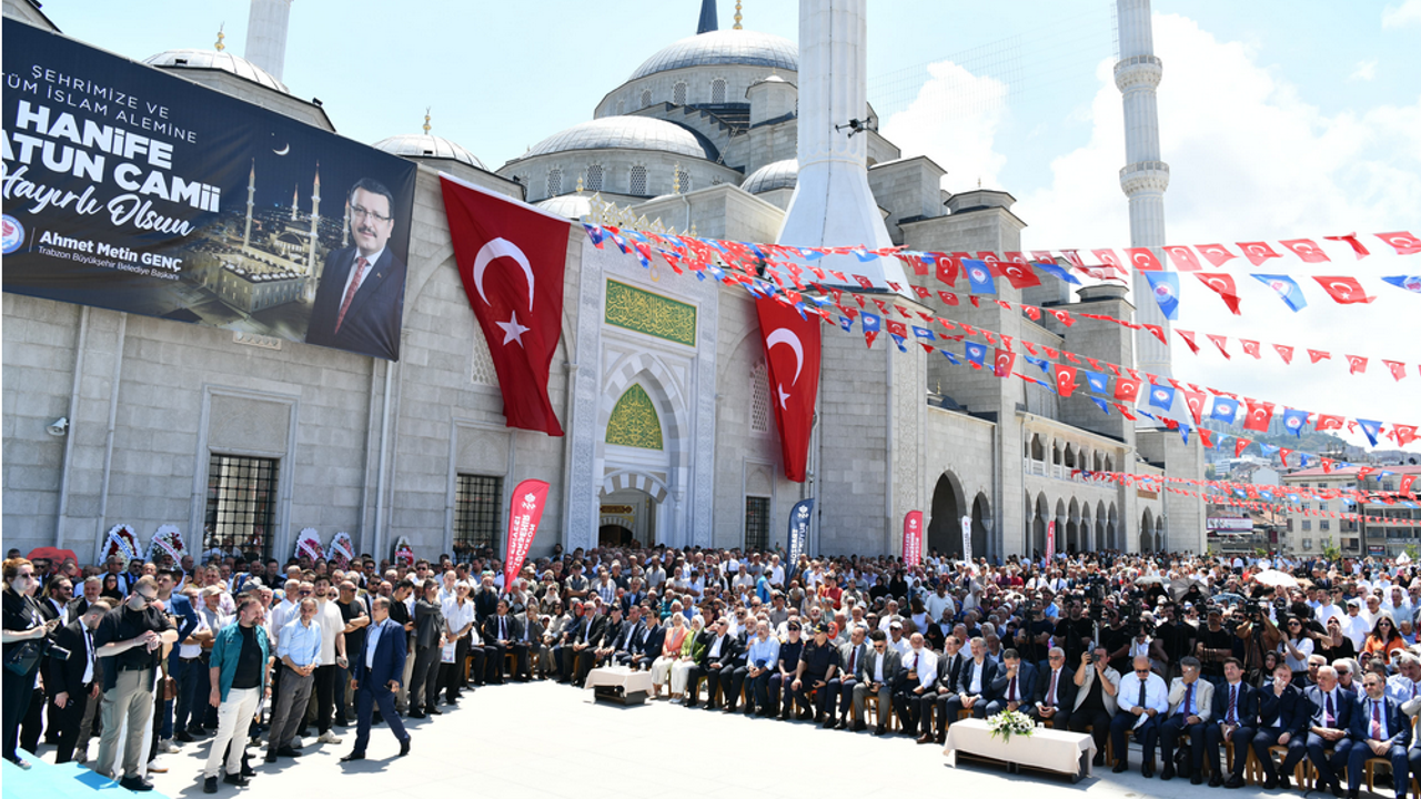 Trabzon’un Ortahisar ilçesi Pazarkapı mevkiinde inşa edilen ve Doğu Karadeniz Bölgesi’nin en büyük camisi olma özelliğini taşıyan Hanife Hatun Camii, düzenlenen görkemli bir törenle ibadete açıldı. Trabzon Büyükşehir Belediyesi tarafından tahsis edilen arazi üzerine yapılan caminin açılış programına Vali Aziz Yıldırım, Büyükşehir Belediye Başkanı Ahmet Metin Genç, AK Parti İl Başkanı Sezgin Mumcu, önceki dönem Çevre ve Şehircilik Bakanı Erdoğan Bayraktar, Diyanet İşleri Başkanlığı Din Hizmetleri Müdürü Şaban Kondi, İl Müftüsü Selami Aydın, ilçe belediye başkanları, kamu kurum müdürleri, siyasi parti ile sivil toplum kuruluşlarının temsilcileri ve çok sayıda vatandaş katıldı. Büyükşehir Belediyesi Mehter takımının gösterisi ve caminin yapımıyla ilgili tanıtım videosuyla başlayan törende konuşan Büyükşehir Belediye Başkanı Ahmet Metin Genç, “Bu güzel eseri şehrimize kazandırmanın mutluluğunu yaşıyoruz” dedi.
