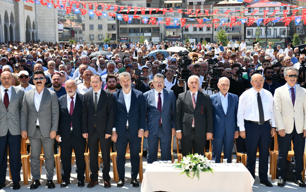 Önceki dönem Çevre ve Şehircilik Bakanı Erdoğan Bayraktar, “Trabzon halkı bu camiyi sahiplendi. Bu cami Trabzon’a çok yakıştı. Bu kadim vilayet önemli bir şehirdir. 12. asırdan itibaren Selçuklu Türklerinin Anadolu topraklarında İslam’ı yaygınlaştırma gayretleriyle doğu Karadeniz’de filizlenen İslamiyet nihayet 1461 yılında Fatih Sultan Mehmet hanın Trabzon’u fethetmesiyle bölge tam anlamıyla bir İslam beldesi olmuştur. 2019 yılından itibaren inşaatına devam ettik. Bu eserde emeği geçen herkese teşekkür ediyorum. Caminin yapılması fikrini ortaya koyan ve sahip çıkan önceki dönem Büyükşehir Belediye Başkanımız Orhan Fevzi Gümrükçüoğlu’na, Ortahisar Belediye Başkanlığı’nda ve Büyükşehir Belediye Başkanlığı’nda vermiş olduğu destekleri için Ahmet Metin Genç’e teşekkür ediyorum. Büyükşehir Belediyesi Fen İşleri Daire Başkanı Murat Öztürk'e ve belediye çalışanlarına, dönemin valisi kıymetli valimiz rahmetli Yücel Yavuz'a, bugünkü Trabzon Valimiz Aziz Yıldırım'a, İl Müftümüz Selami Aydın’a, Ortahisar Müftümüz Özcan Yılmaz'a, değerli hocam Profesör Dr. Şaban Şimşek'e, eski milletvekilleri Mahmut Kaplan, Mikail Aslan, Mete Bülgün’e, eski Milli Eğitim Bakanımıza, genel müdürümüz Seyfullah Aslantürk’e, mimar Safiye Demir’e, derneğimizin başkanı İrfan Altıner’e ve emek veren herkese çok teşekkür ediyorum. Camiler sadece ibadetlerimi yapmak için bir araya geldiğimiz yer değildir, tüm medeniyetlerin merkezinde cami vardır. Camimiz aynı anda 7 bin 700 kişinin ibadet yapabileceği bir alana sahiptir. Bu cami ve külliye simge niteliği kazanacaktır. Trabzon bizim sevdamızdır. Trabzon vatanına, bayrağına ve milletine bağlı birçok kişinin yetiştirdiği şehirdir. Trabzon’un cazibe merkezi olma özelliğini artırmalıyız. Eğitim, üretim, sanayi ve turizmin artması için elimizden geleni yapmalıyız” diye konuştu. Konuşmaların ardından İl Müftüsü Selami Aydın’ın dualarıyla cami açılışı gerçekleştirilerek ilk Cuma namazı kılındı.
