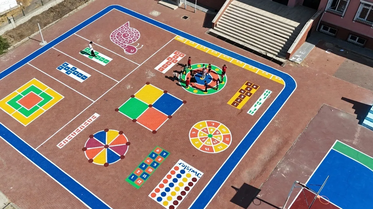 Sadece bununla da kalmayan muhtar, okulun önüne öğrencilerin teneffüslerde ve derslerde keyifli vakit geçirmesi için oyun alanları çizdirerek boyattı.