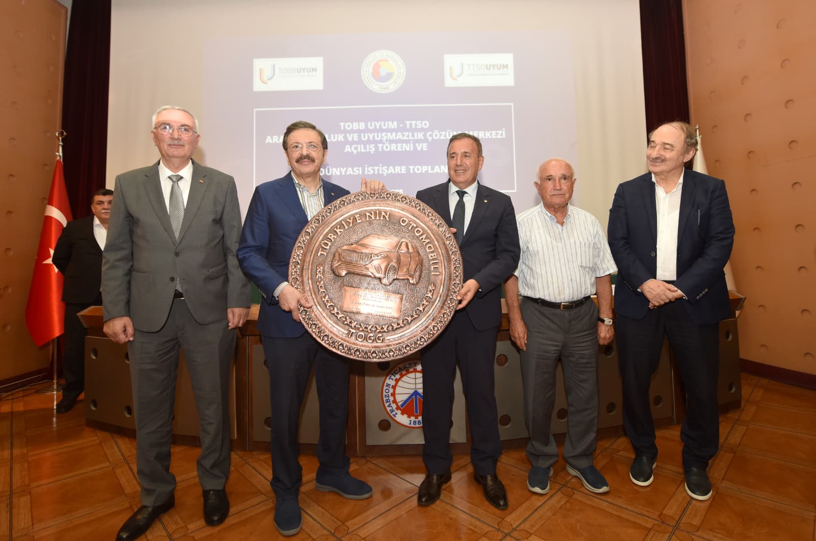 TTSO Başkanı Erkut Çelebi ve Meclis Başkan Yardımcısı Selçuk İskender, açılış konuşmalarının ardından TOBB Başkanı M. Rifat Hisarcıklıoğlu'na, üzerinde Türkiye'nin Otomobili TOGG yazan ve TOGG'un kabartma bir modeli bulunan bakır el sanatı ürünü hediye etti. Çelebi ve İskender ayrıca eski TBMM Başkanı Cemil Çiçek'e de telkâriden kahve fincanı takımı hediye etti.