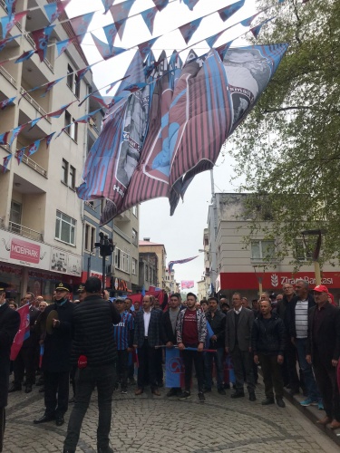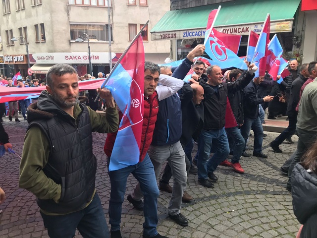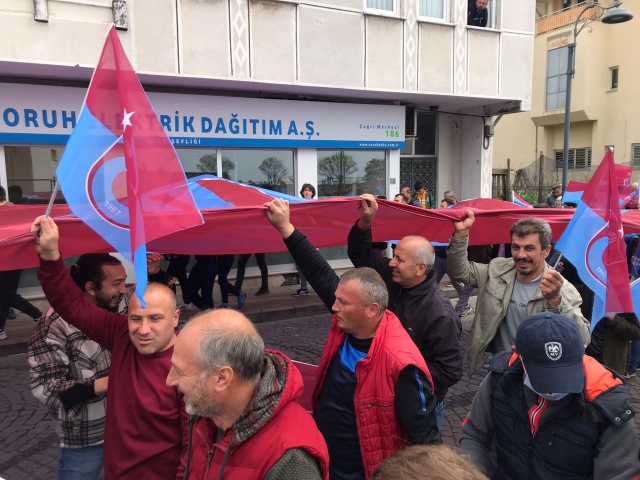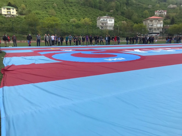 Trabzon’da Çarşıbaşı Taraftarlar Derneği ve Çarşıbaşı Belediyesi’nce 25 metreye 61 metre, 350 kilogram ağırlığında dev Trabzonspor bayrağı yaptırıldı. Taraftarlar bayrakla yürüyüş gerçekleştirdi.