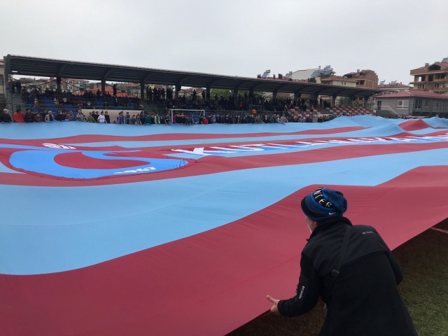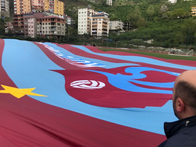 Trabzonspor 'un Fraport TAV Antalyaspor maçı öncesi taraftarların hazırlıkları sürüyor. Çarşıbaşı ilçesinde Çarşıbaşı Taraftarlar Derneği ve Çarşıbaşı Belediyesi’nce 25 metreye 61 metre genişliğinde dev Trabzonspor bayrağı yaptırıldı.
